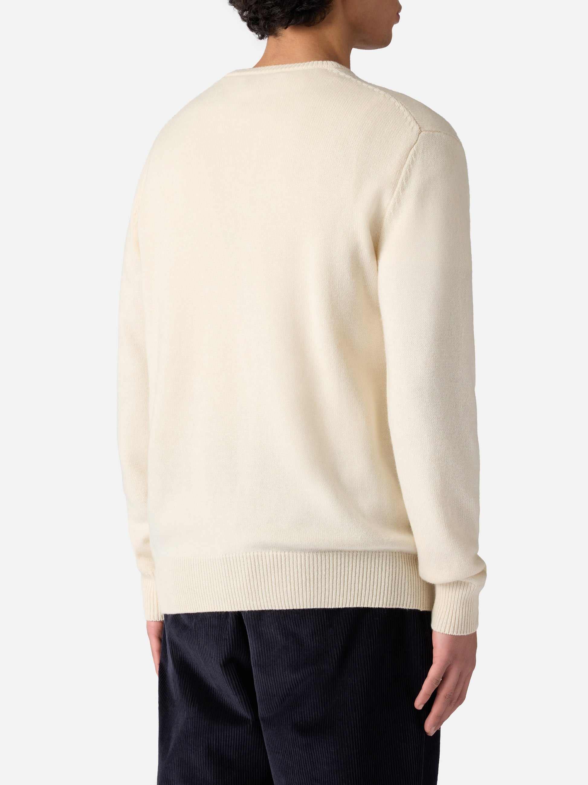 Weißer Herrenpullover mit Settimana in Bianco-Stickerei