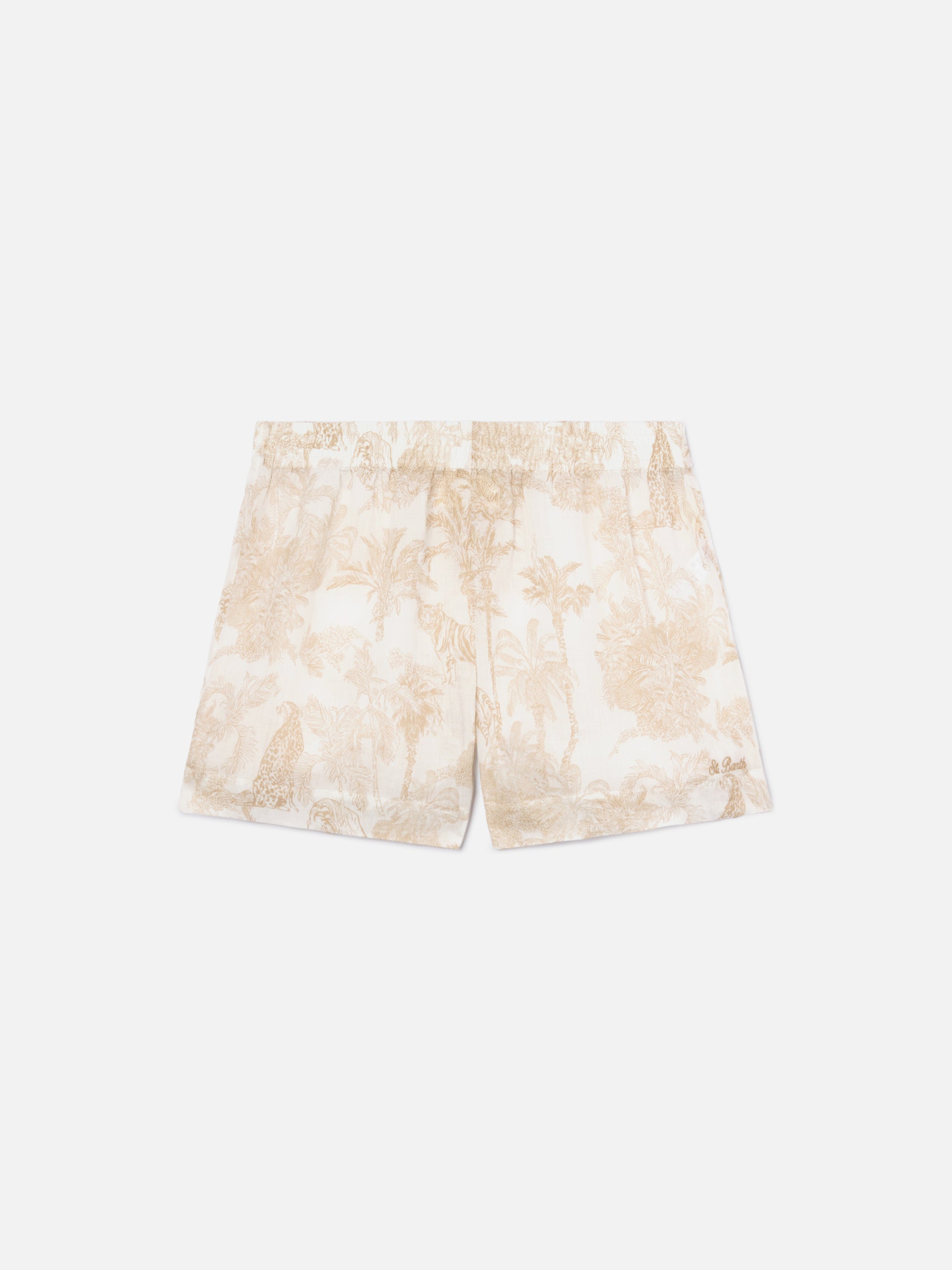 Shorts Meave in ramie con stampa toile de jouy beige