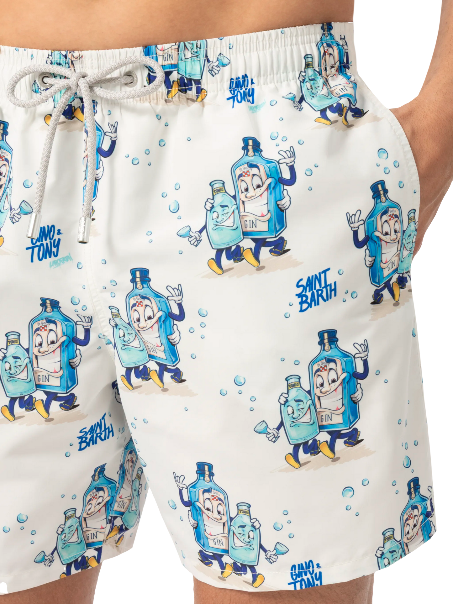 Mittellange Badeshorts für Herren Gustavia Stoff mit Pfirsich-Touch-Effekt Gin Tonic Cocktail Allover-Druck Weißer Hintergrund Elastischer Bund für mehr Komfort Verstellbarer Kordelzug mit Markenanschlüssen Inneres Netzfutter Seitentaschen mit französischen Nähten Aufgesetzte Gesäßtasche mit Klettverschluss Markenösen zum Ableiten von Wasser und zur Vermeidung des Balloneffekts Exklusives MC2 Saint Barth-Etikett auf der Rückseite Klassische Passform Zusammensetzung: 100% recyceltes Polyester Größe L hat eine halbe Bundweite von 52 cm (gedehnt) und variiert bei jeder Größe um 2 cm; Seitenlänge inkl. Bund 41,5 cm Bitte beachten Sie, dass alle angegebenen Maße ungefähre Angaben sind und aufgrund manueller Messung eine Toleranz von 1-2 cm aufweisen. Dieser Toleranzbereich ist normal und zu erwarten. Das Model ist 185 cm groß und trägt Größe L Pflegehinweise: Kaltwäsche unter fließendem Wasser und neutraler Seife. Zum Trocknen aufhängen. Nicht einweichen lassen und nicht in Kontakt mit anderer Kleidung trocknen. Das Kleidungsstück nicht in Kontakt mit anderer Kleidung im nassen Zustand liegen lassen.