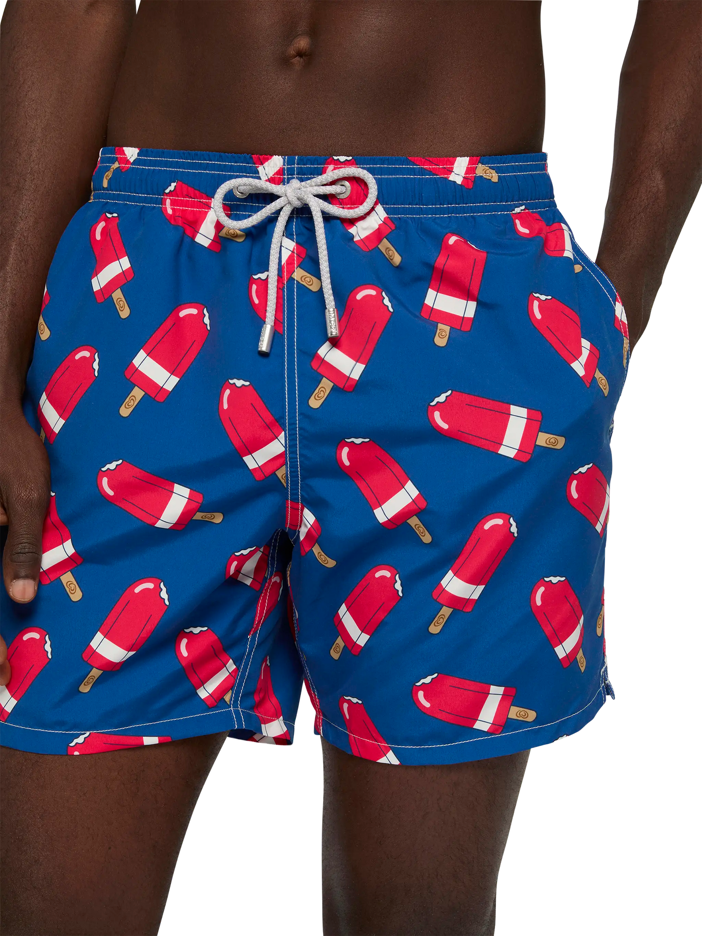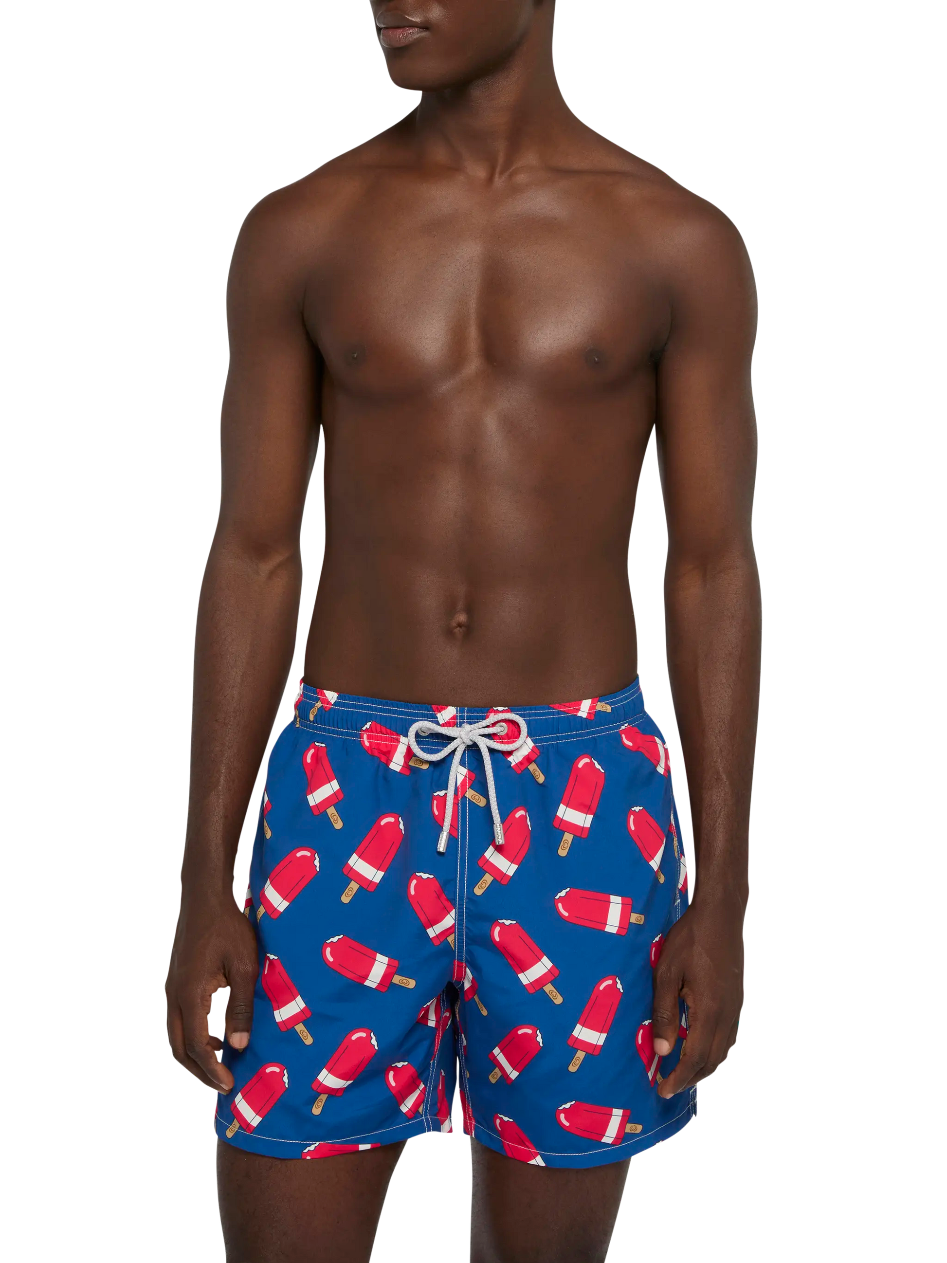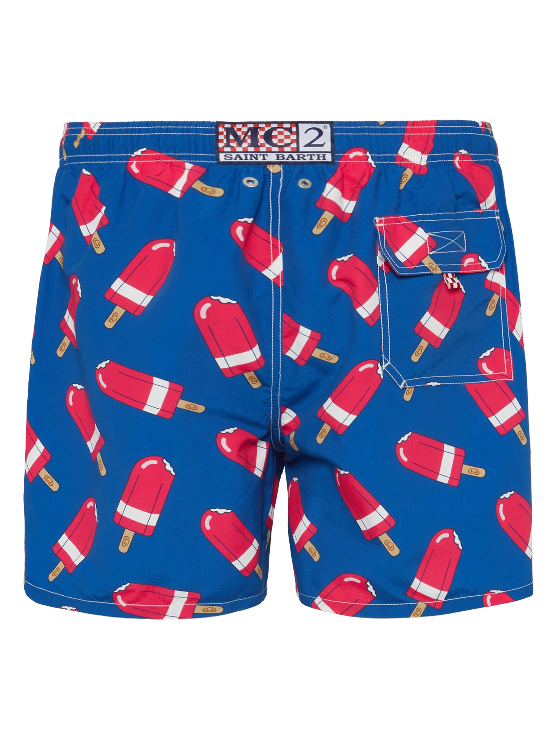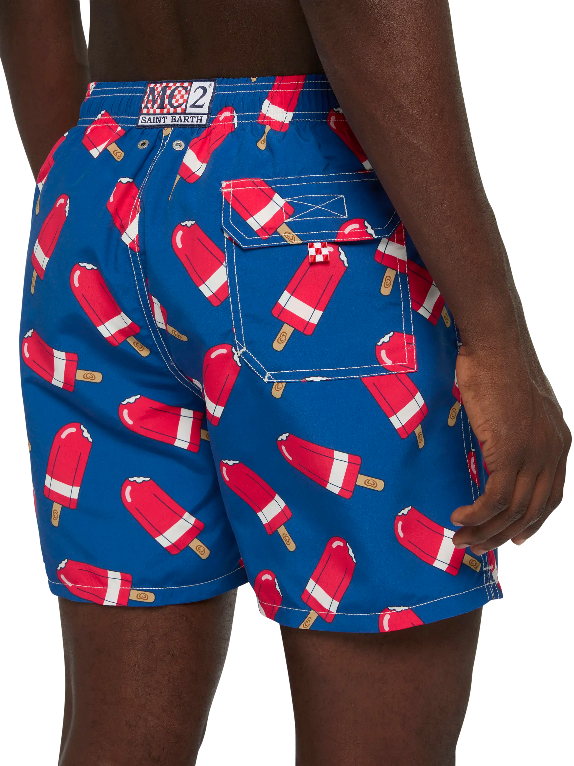 Mittellange Badeshorts für Herren Gustavia Stoff mit Pfirsich-Touch-Effekt Fior di Fragola-Eiscreme als Allover-Print Marineblauer Hintergrundstoff Elastischer Bund für mehr Komfort Verstellbarer Kordelzug mit Markenanschlüssen Inneres Netzfutter Seitentaschen mit französischen Nähten Aufgesetzte Gesäßtasche mit Klettverschluss Markenösen zum Ableiten von Wasser und zur Vermeidung des Balloneffekts Exklusives MC2 Saint Barth-Etikett auf der Rückseite Klassische Passform Zusammensetzung: 100% recyceltes Polyester Größe L hat eine halbe Bundweite von 52 cm (gedehnt) und variiert bei jeder Größe um 2 cm; Seitenlänge inkl. Bund 41,5 cm Bitte beachten Sie, dass alle angegebenen Maße ungefähre Angaben sind und aufgrund manueller Messung eine Toleranz von 1-2 cm aufweisen. Dieser Toleranzbereich ist normal und zu erwarten. Pflegehinweise: Kaltwäsche unter fließendem Wasser und neutraler Seife. Zum Trocknen aufhängen. Nicht einweichen lassen und nicht in Kontakt mit anderer Kleidung trocknen. Das Kleidungsstück nicht in Kontakt mit anderer Kleidung im nassen Zustand liegen lassen.