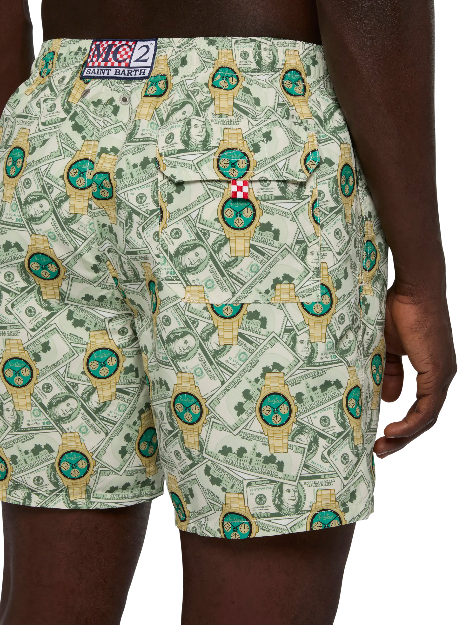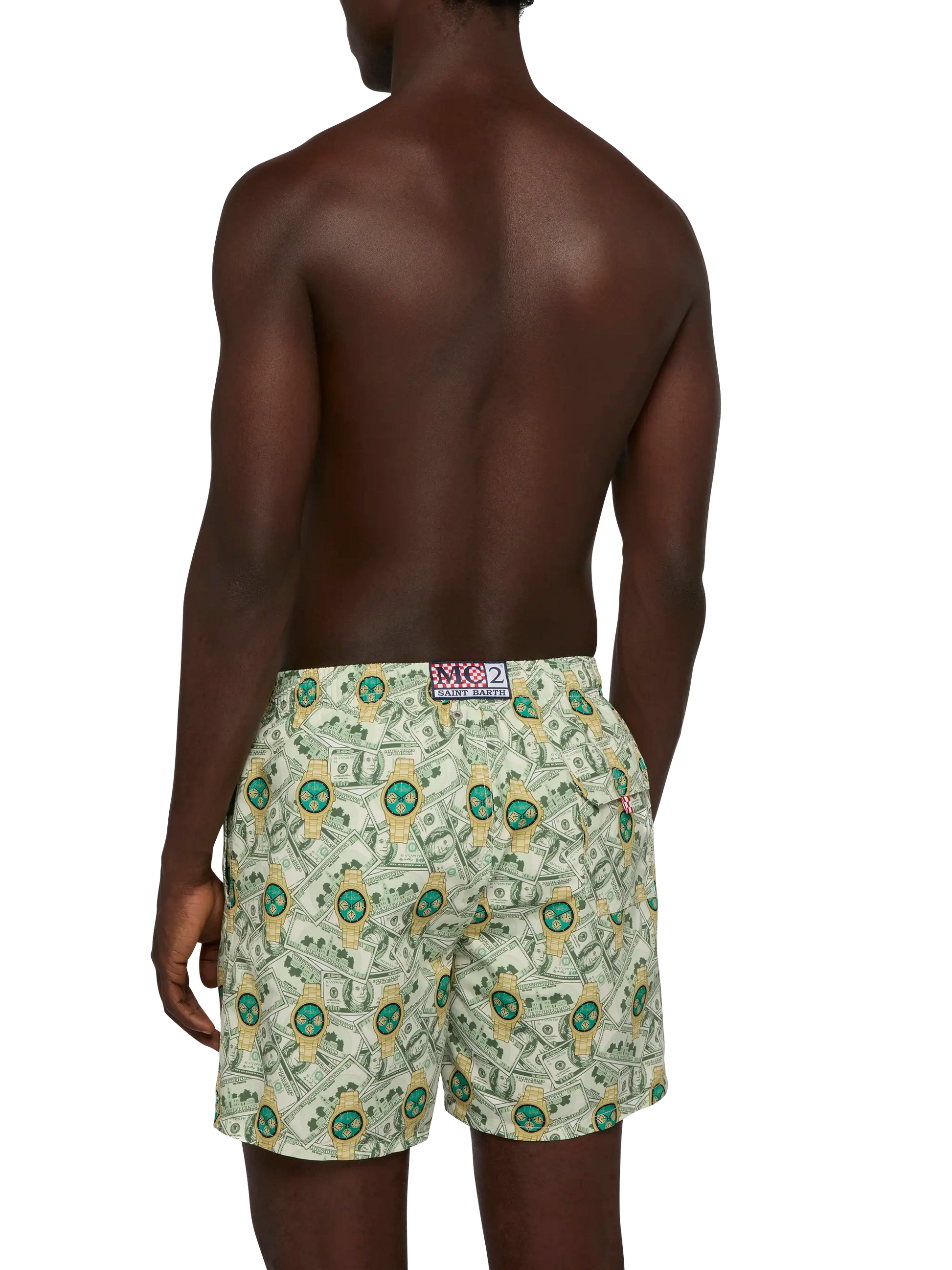 Gustavia ist ein zeitloses Strand-Basic von MC2 Saint Barth. Es zeichnet sich durch eine klassische Passform, einen elastischen Bund mit Kordelzug, ein bequemes Innenfutter aus Netzstoff und Ösen auf der Rückseite aus, die ein Aufblähen verhindern. Es ist aus pfirsichfarbenem Stoff für ein luxuriöses Gefühl gefertigt und in vielen Farben und Mustern erhältlich. Seit den vergangenen Saisons wird es aus recyceltem Polyester hergestellt, was unser Engagement für Nachhaltigkeit widerspiegelt. Uhren im Allover-Print Elastischer Bund für mehr Komfort Verstellbarer Kordelzug mit Markenanschlüssen Inneres Netzfutter Seitentaschen mit französischen Nähten Aufgesetzte Gesäßtasche mit Klettverschluss Markenösen zum Ableiten von Wasser und zur Vermeidung des Balloneffekts Exklusives MC2 Saint Barth-Etikett auf der Rückseite Klassische Passform Zusammensetzung: 100% recyceltes Polyester Größe L hat eine halbe Bundweite von 52 cm (gedehnt) und variiert bei jeder Größe um 2 cm; Seitenlänge inkl. Bund 41,5 cm Bitte beachten Sie, dass alle angegebenen Maße ungefähre Angaben sind und aufgrund manueller Messung eine Toleranz von 1-2 cm aufweisen. Dieser Toleranzbereich ist normal und zu erwarten. Das Model ist 185 cm groß und trägt Größe L Pflegehinweise: Kaltwäsche unter fließendem Wasser und neutraler Seife. Zum Trocknen aufhängen. Nicht einweichen lassen und nicht in Kontakt mit anderer Kleidung trocknen. Das Kleidungsstück nicht in Kontakt mit anderer Kleidung im nassen Zustand liegen lassen.