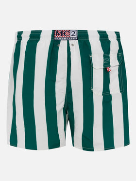 Mittellange gestreifte Badeshorts Gustavia mit St. Barth-Stickerei