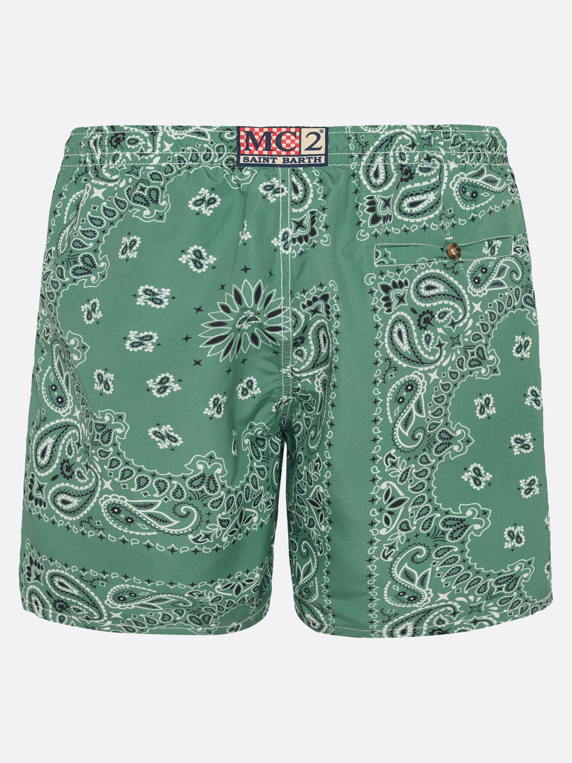Mittellange Badeshorts Caprese mit militärgrünem Bandanna-Print