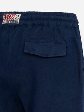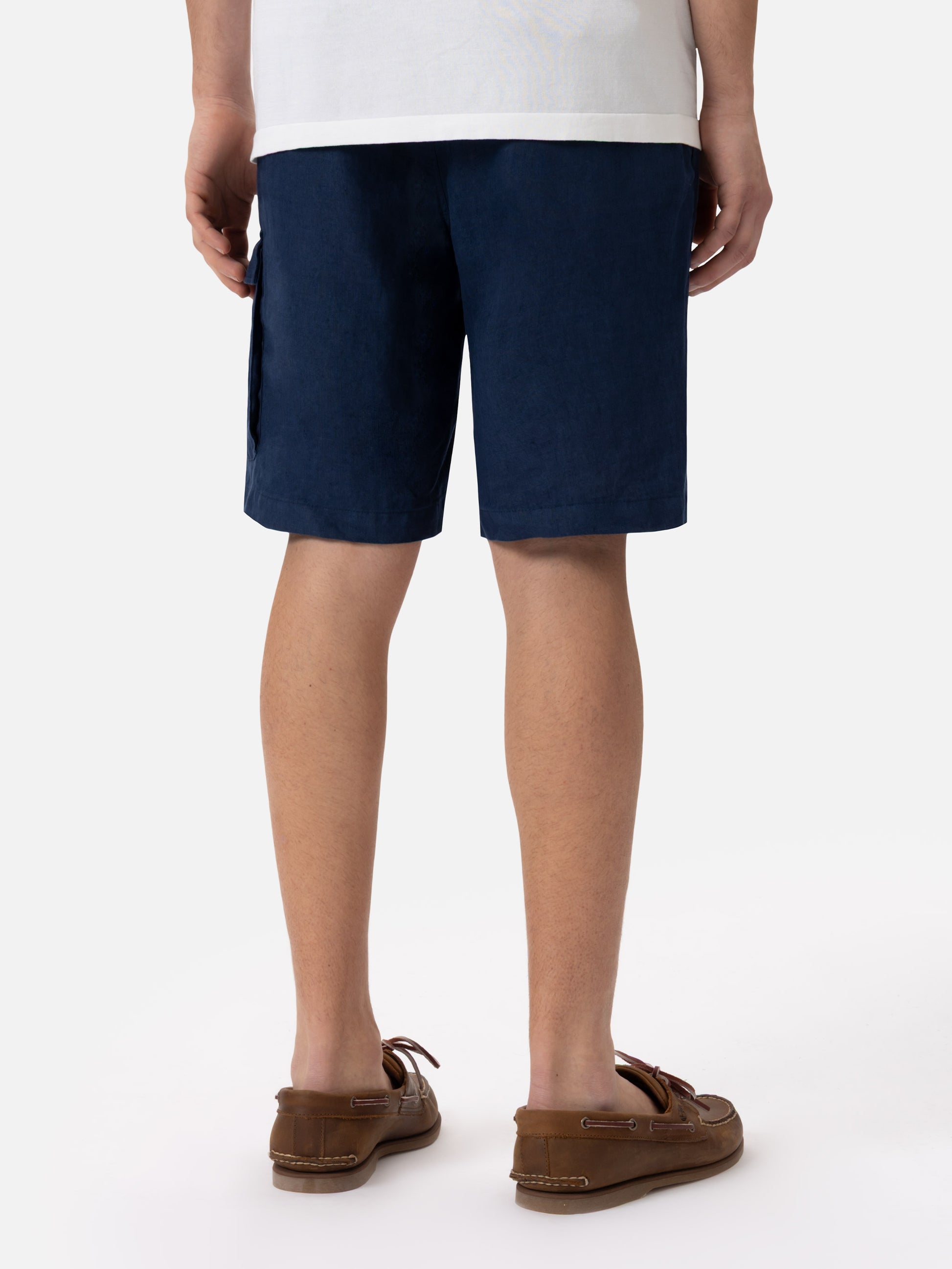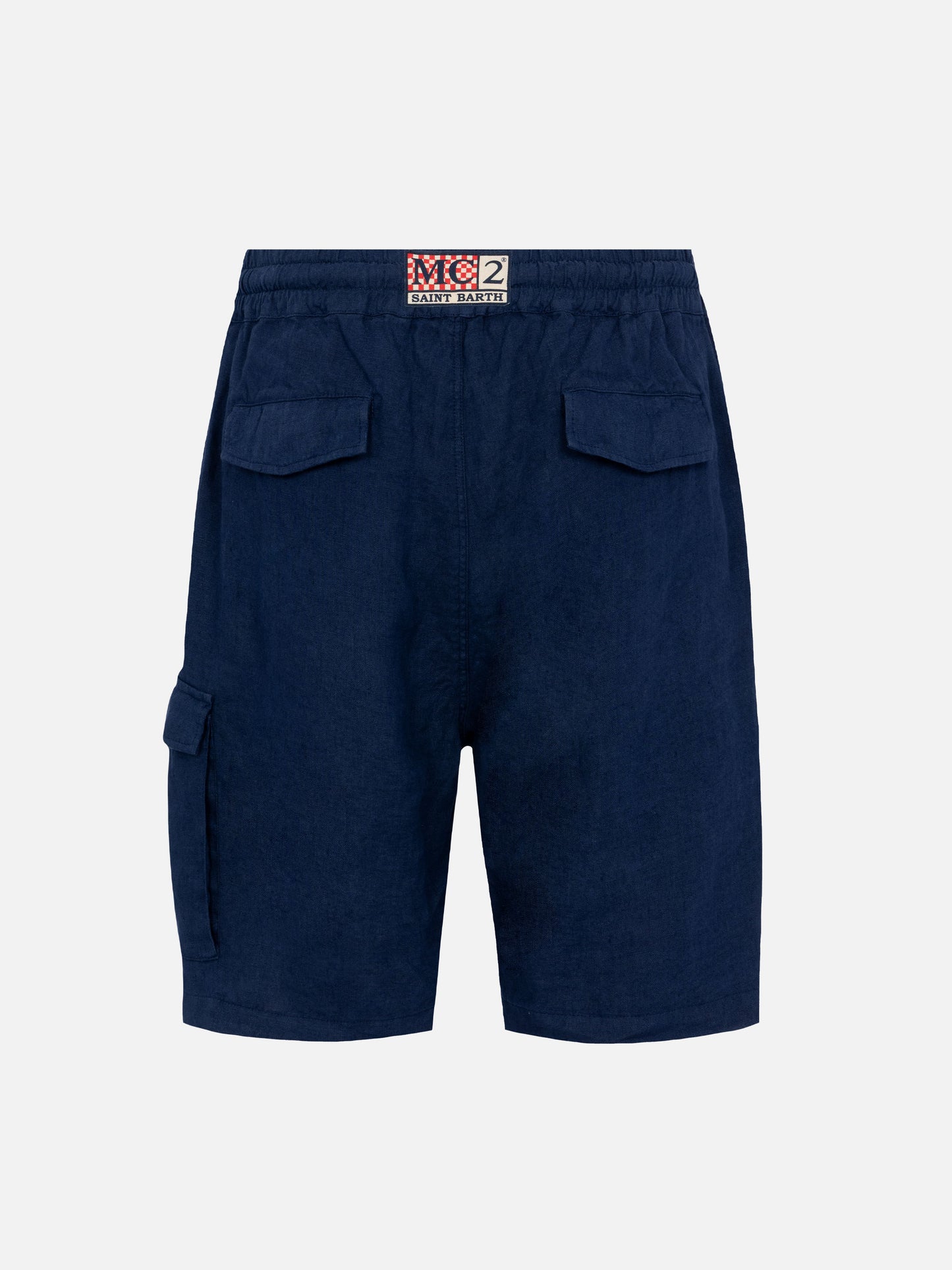 Wir präsentieren unsere Bermudashorts aus Leinen für Herren, die für Stil und Komfort entworfen wurden. Sie verfügen über einen Kordelzug und einen elastischen Bund für einen sicheren Sitz, Gesäßtaschen, eine praktische Tasche am linken Bein und Seitentaschen für den praktischen Gebrauch. Ein verdeckter Knopfverschluss vorne und ein Markenetikett vervollständigen diese lässigen und doch eleganten Shorts. Bermudashorts für Herren Marineblau, einfarbig Stückgefärbt Elastischer Hosenbund Kordelzugverschluss Französische Seitentaschen Utility-Tasche am linken Bein Gesäßtaschen mit Knopfverschluss Rückenetikett mit exklusivem MC2 Saint Barth-Logo Normale Passform Zusammensetzung: 100% Leinen