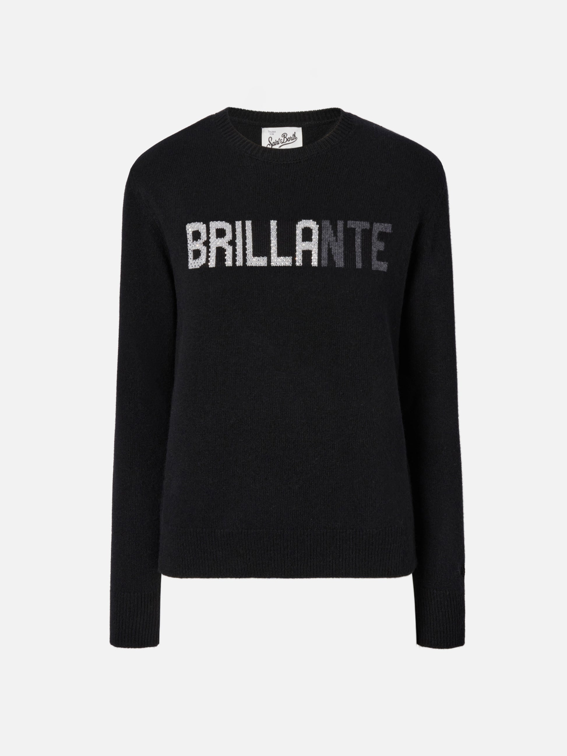 Neuer Queen-Pullover aus Kaschmirmischung in Schwarz mit Brillante-Strassapplikationen