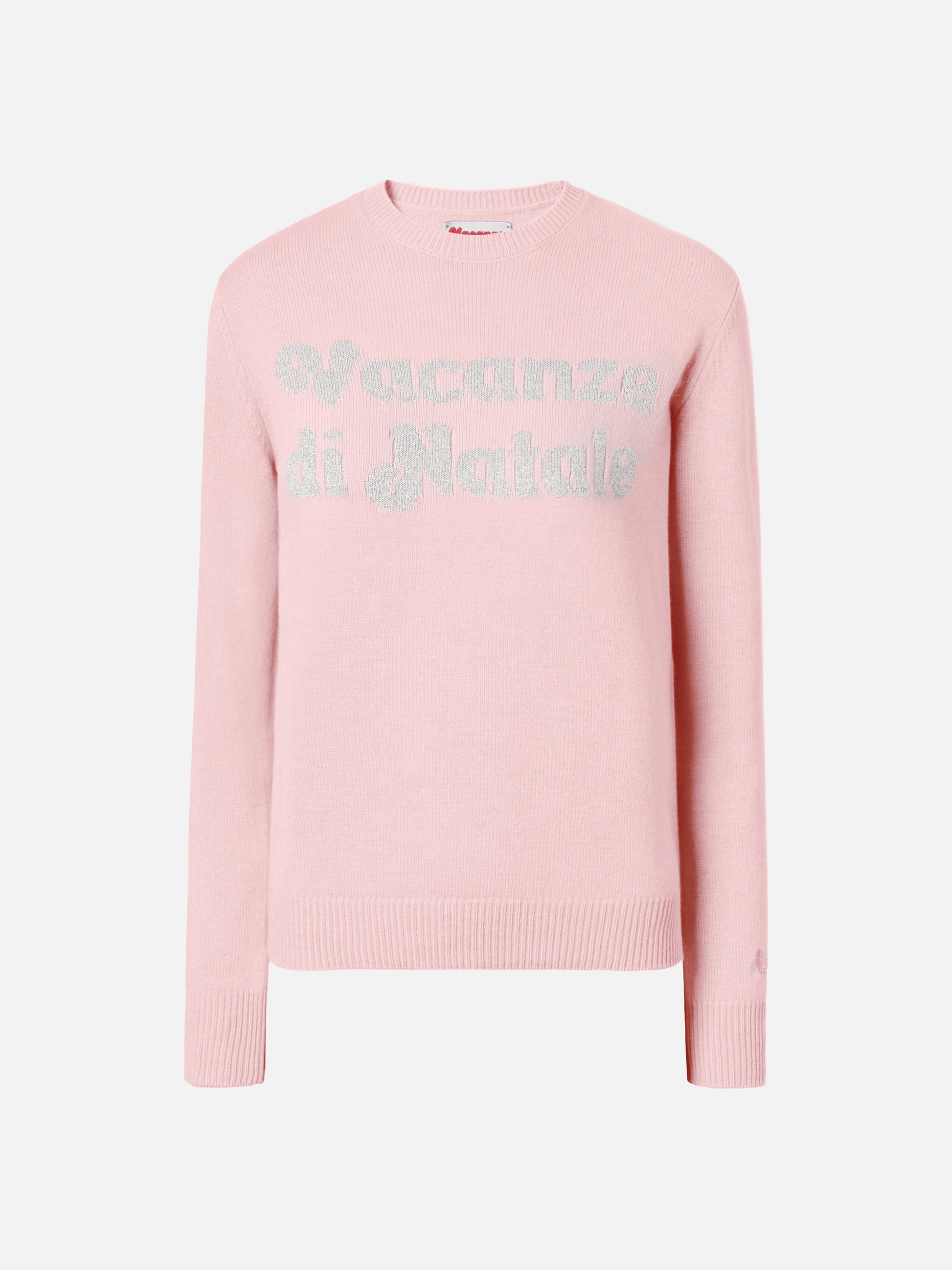 New Queen-Pullover aus Kaschmirmischung in Rosa mit Lurex-Jacquard von Vacanze di Natale | VACANZE DI NATALE SONDERAUSGABE
