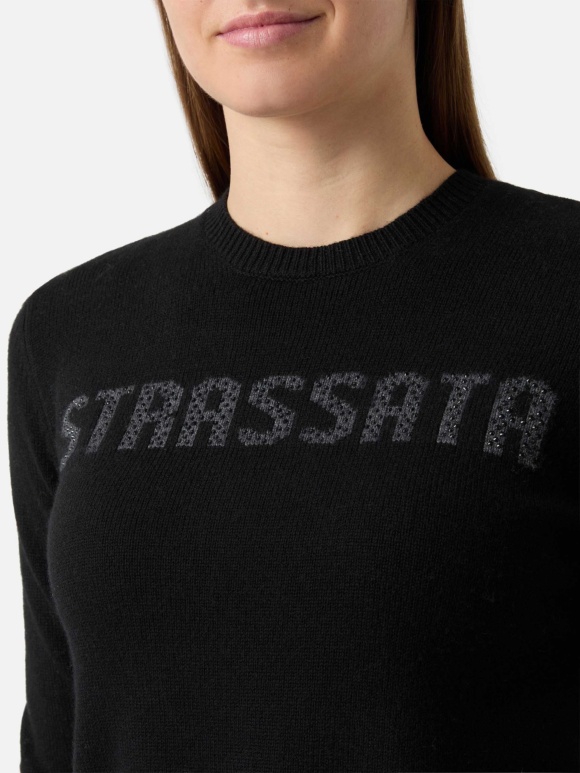 New Queen Crewneck in Weiß mit Strassato-Strassverzierungen