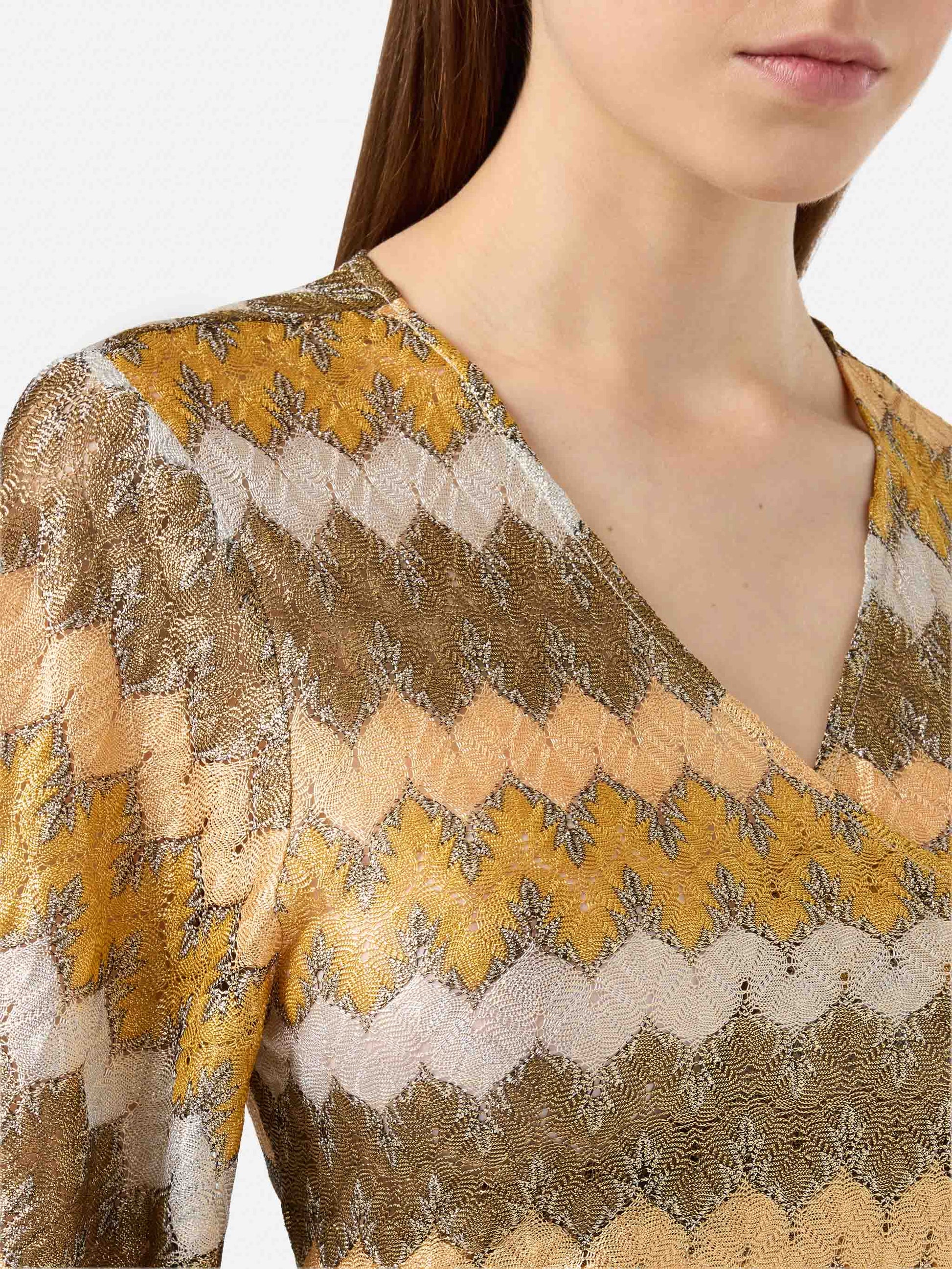 Angelina Bluse mit offenem V-Ausschnitt aus Raschelgewebe