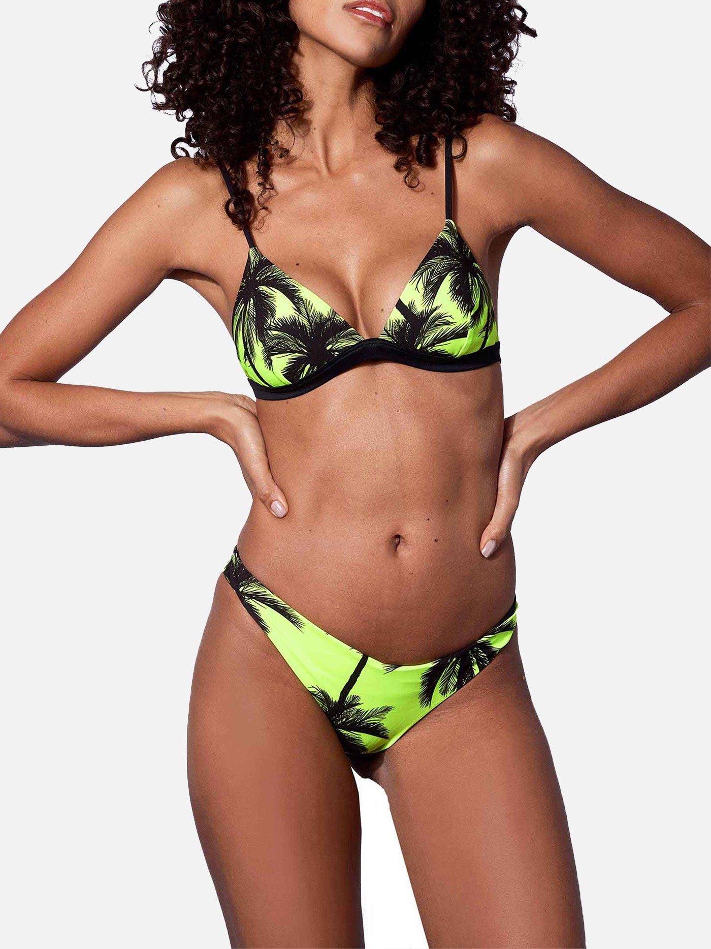 Fluoreszierender Triangel-Bikini mit Palmenmuster in Gelb