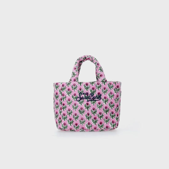 Gesteppte Soft Tote Mini-Tasche mit rosa Blumenmuster