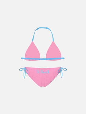 Rosafarbener Mädchen-Triangel-Bikini mit Paspelierung