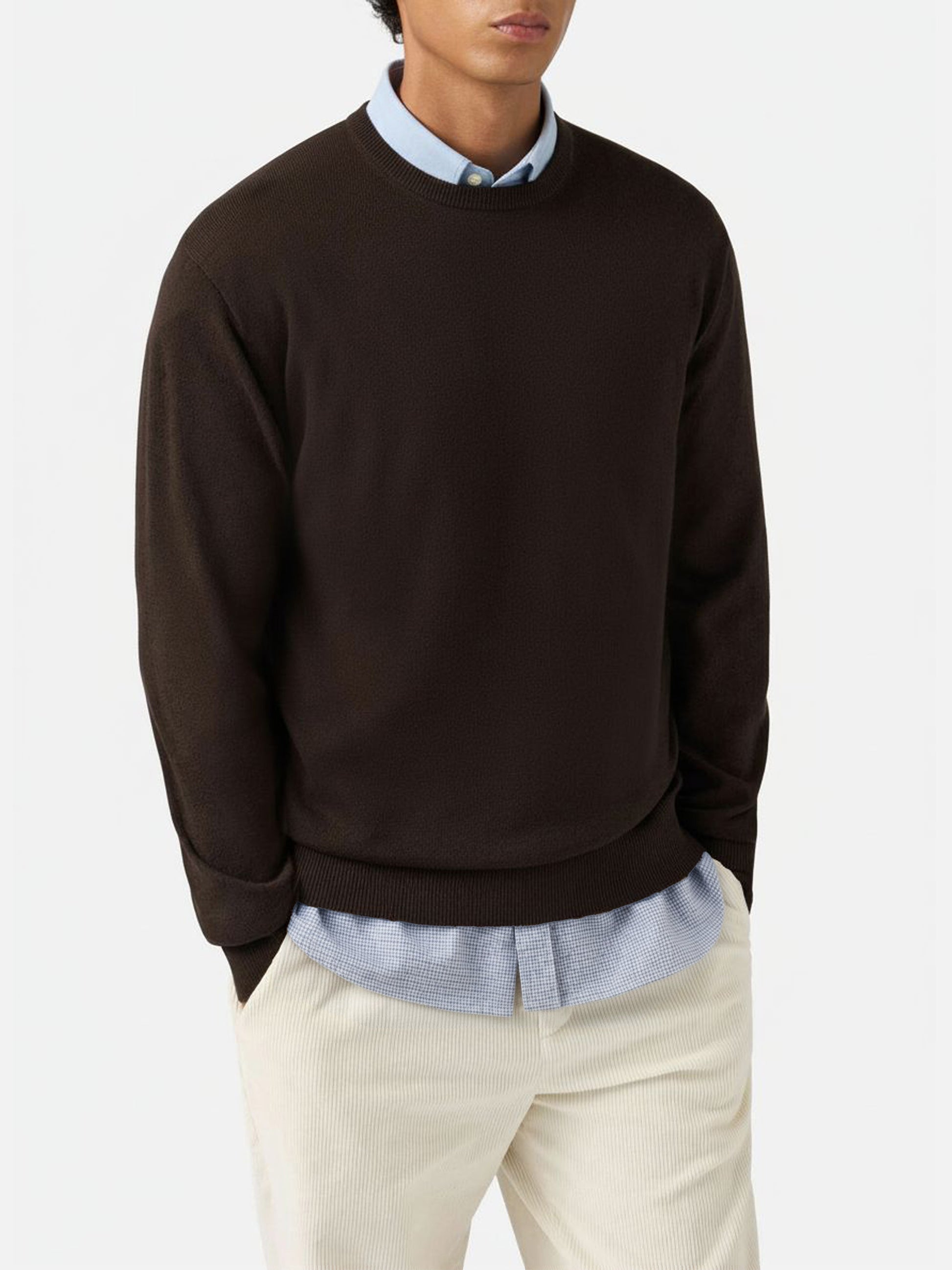 Regent-Pullover aus brauner Merinowolle und Kaschmir