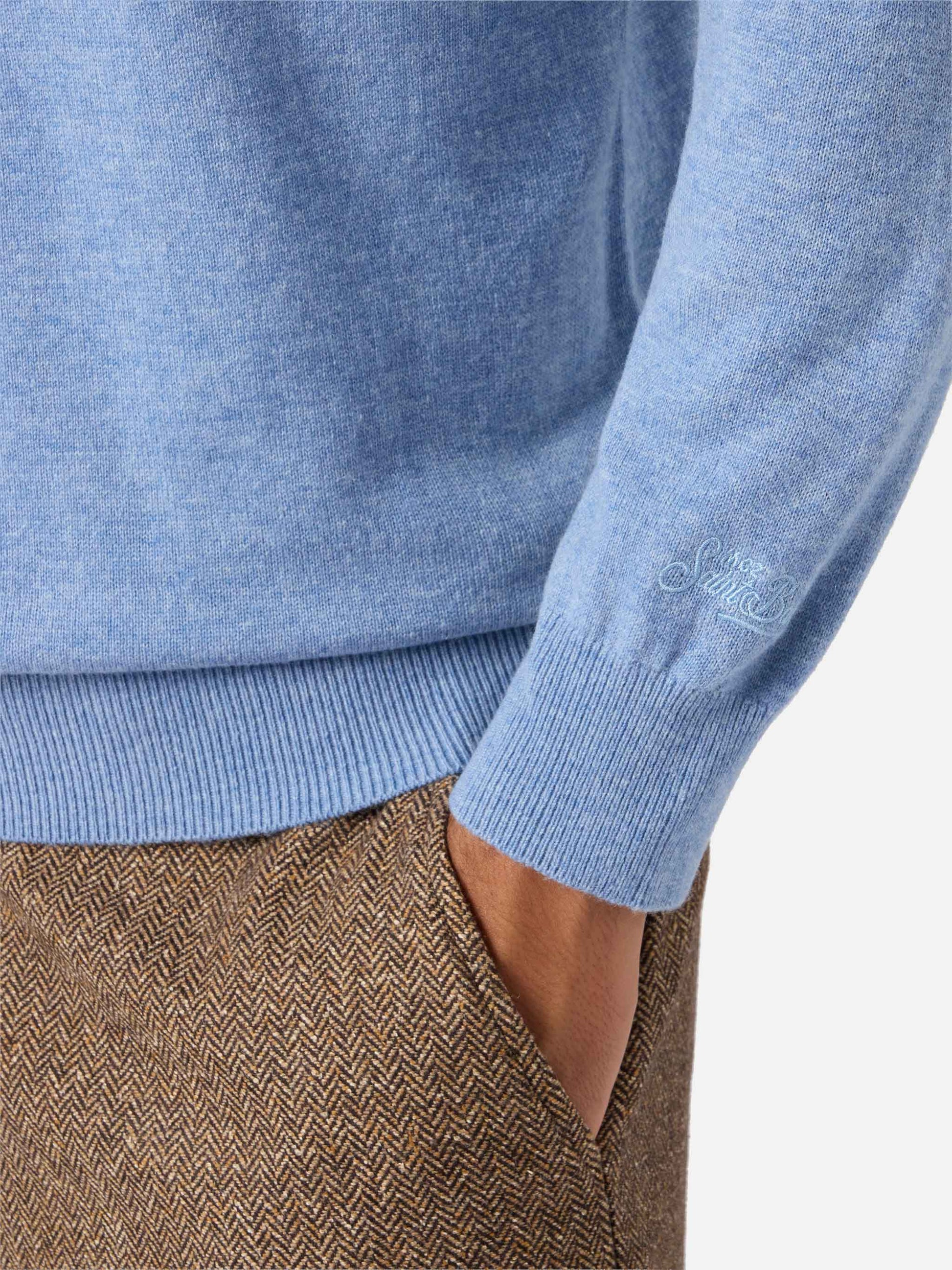 Regent-Pullover aus staubigem Blau, Merinowolle und Kaschmir