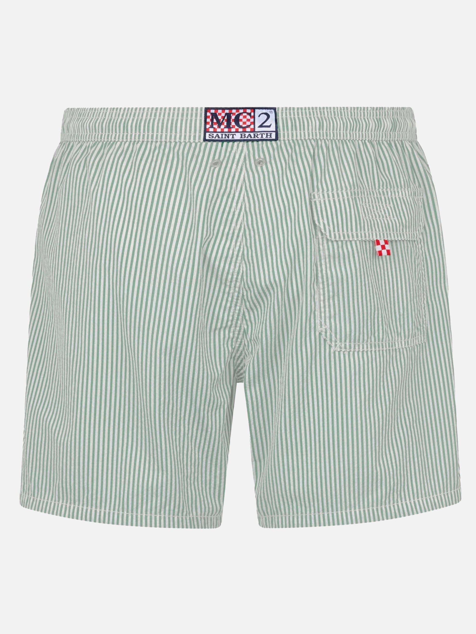 Patmos Badeshorts aus Seersucker in Salbeigrün mit Streifen, klassisch leicht