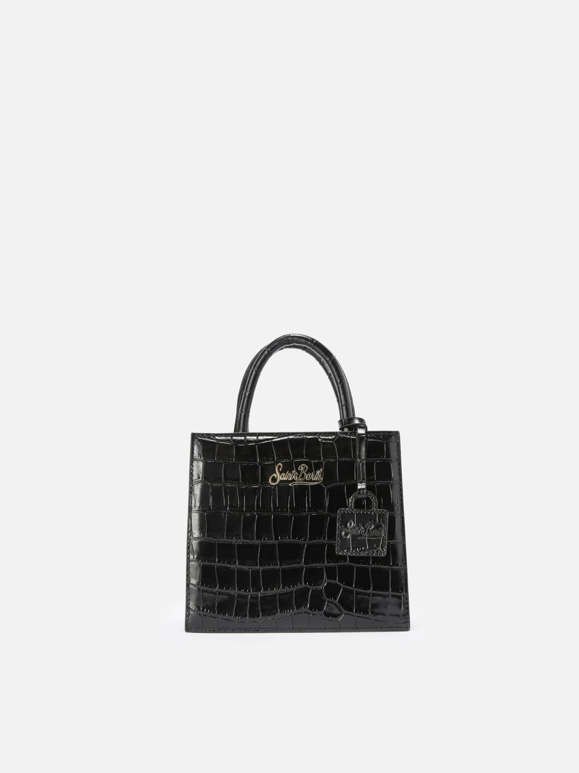 Mini-Handtasche aus schwarzem Leder mit Krokodilprägung