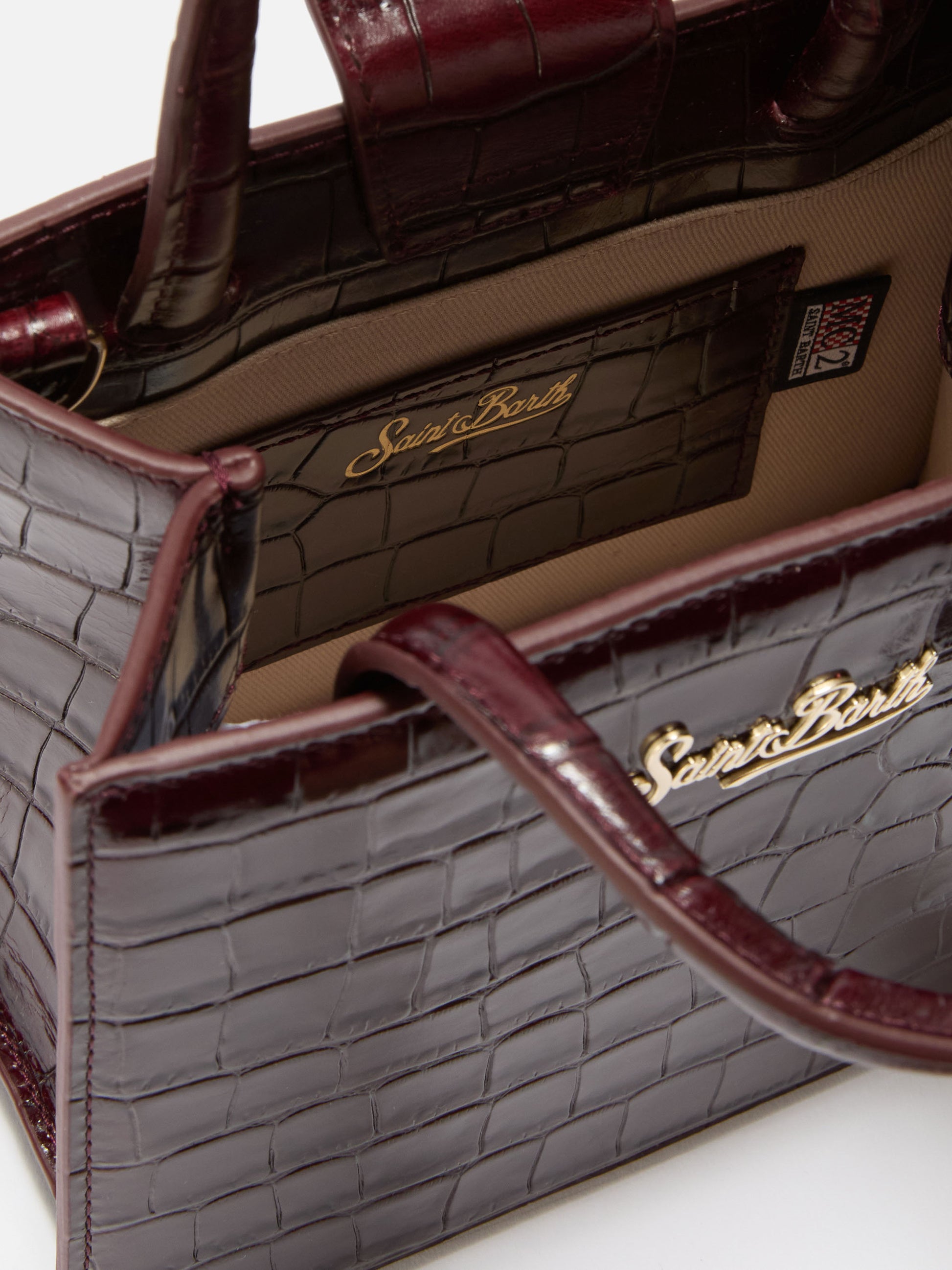 Shop Bag Mini Handtasche aus burgunderrotem Leder mit Krokodilprägung