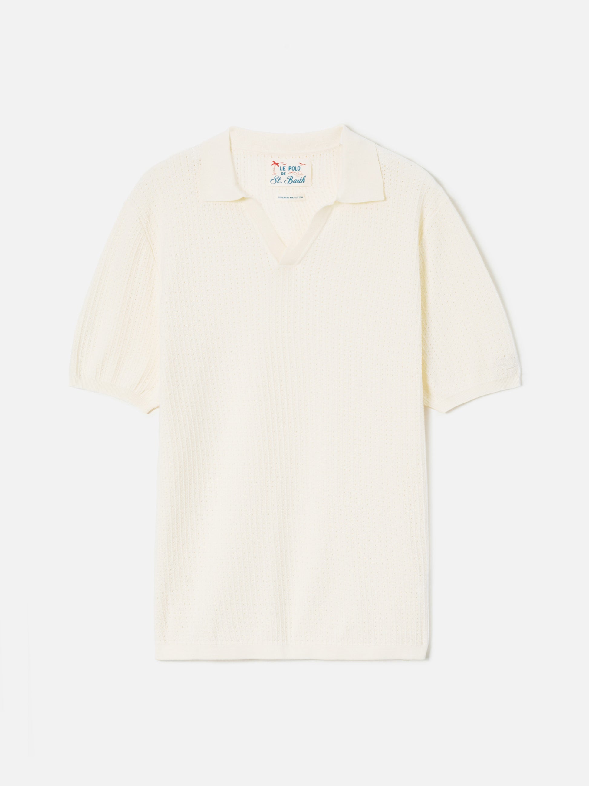 Polo Sloan Net in cotone pregiato high twist tinta unita beige