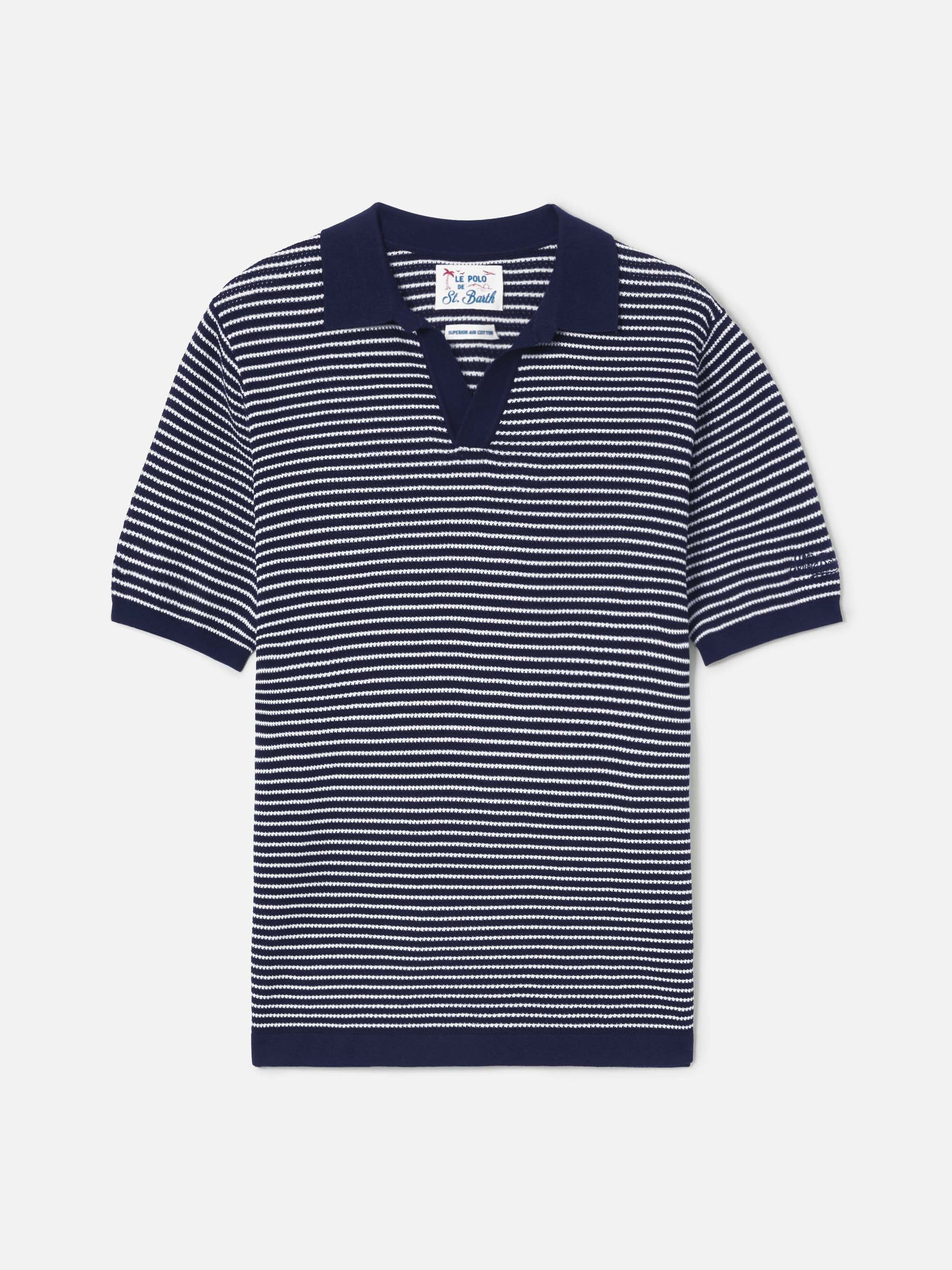 Polo Sloan in cotone pregiato high twist a righe blu