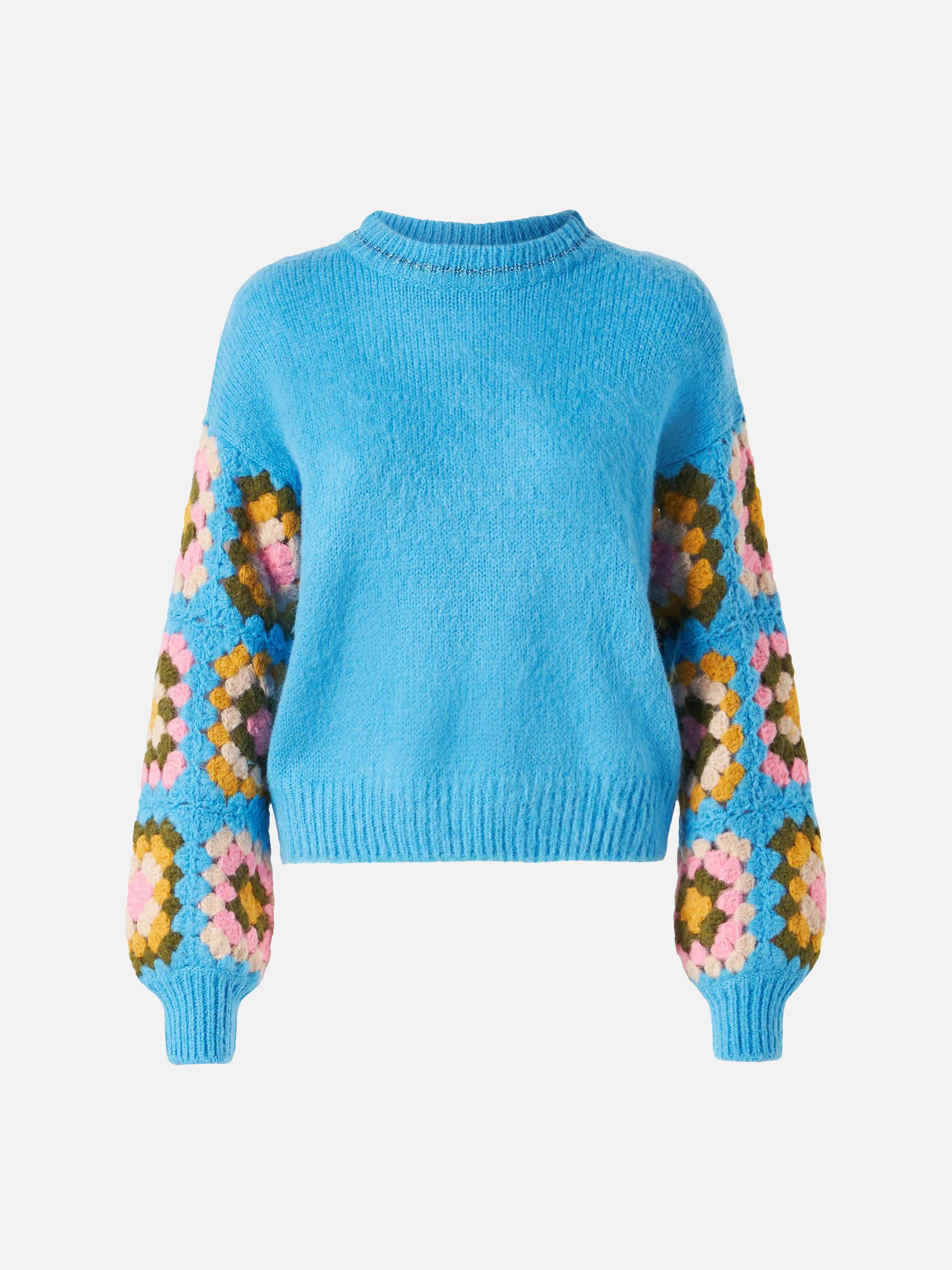 Ultraweiches Danya Soft Crochet Jr-Modell mit Rundhalsausschnitt und handgefertigten Häkelärmeln