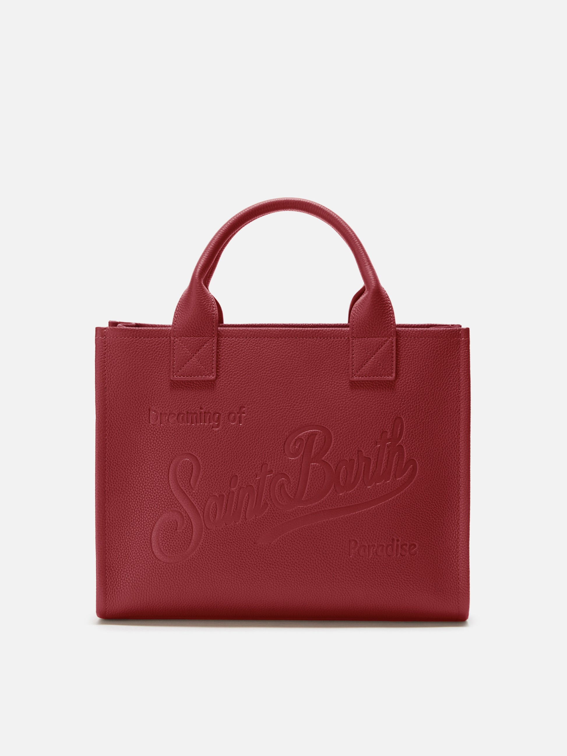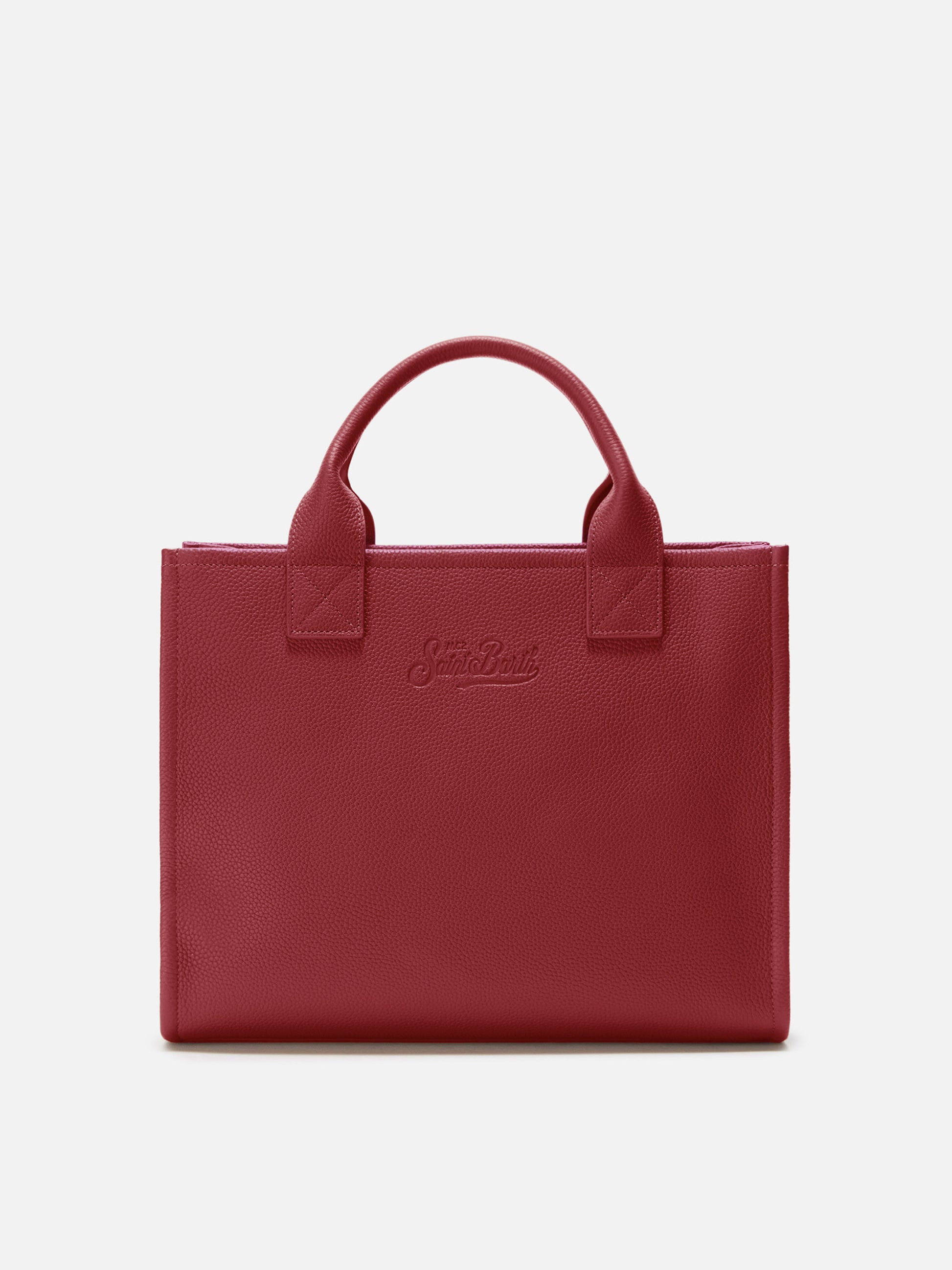 Große Vanity Bag Schultertasche aus burgunderrotem, gehämmertem Leder
