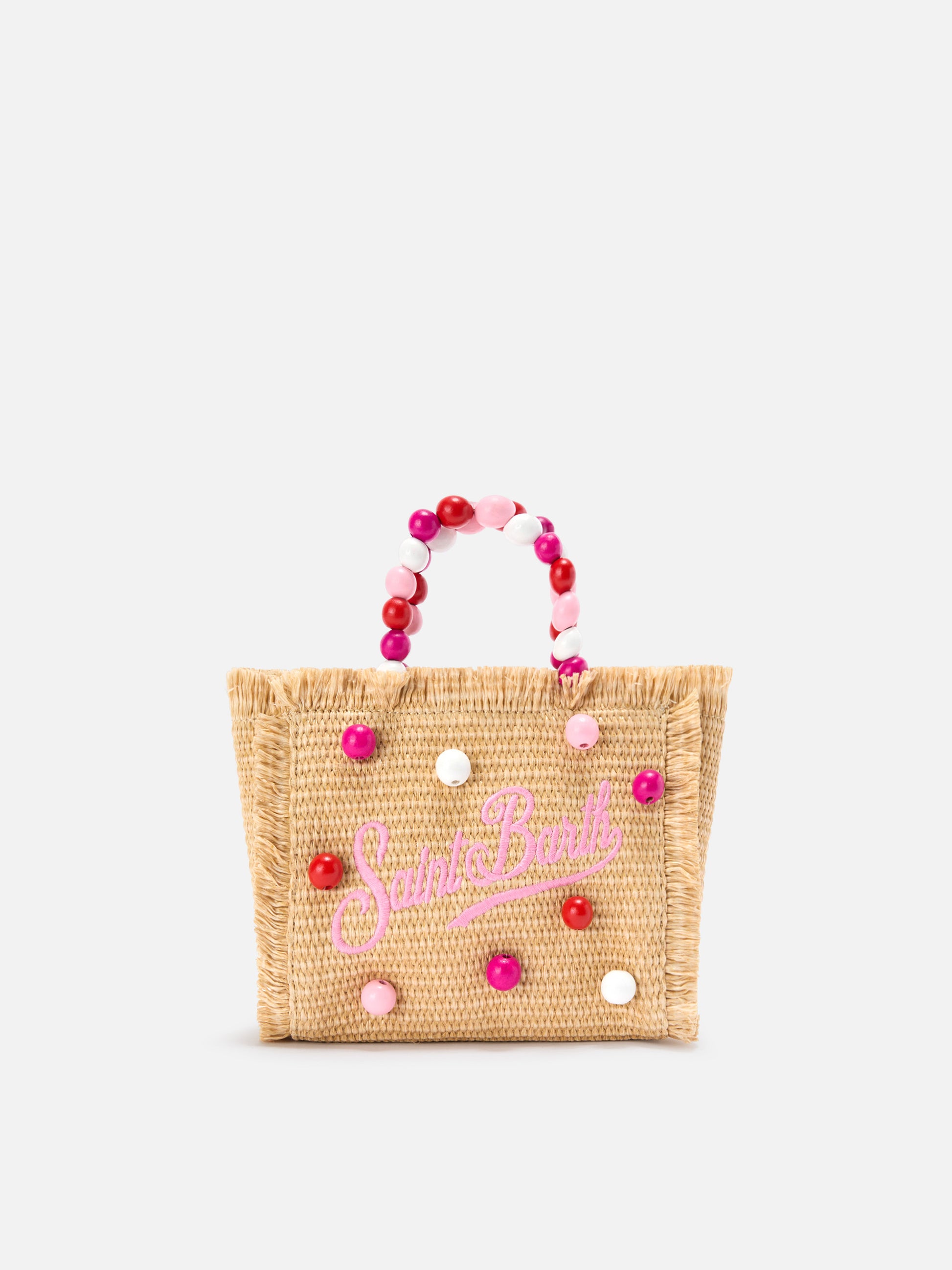Borsa Vanity mini in tessuto effetto paglia con manico con perline