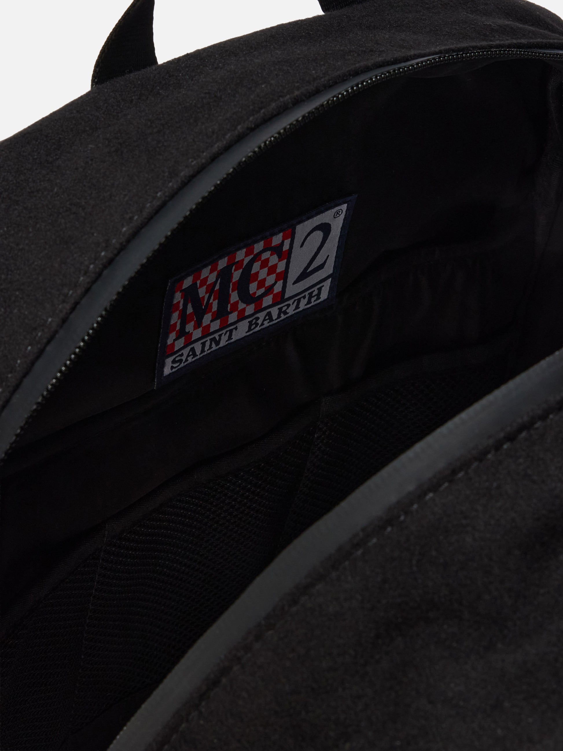 Wallin Filzrucksack aus schwarzem Wollmischgewebe mit Lederdetails