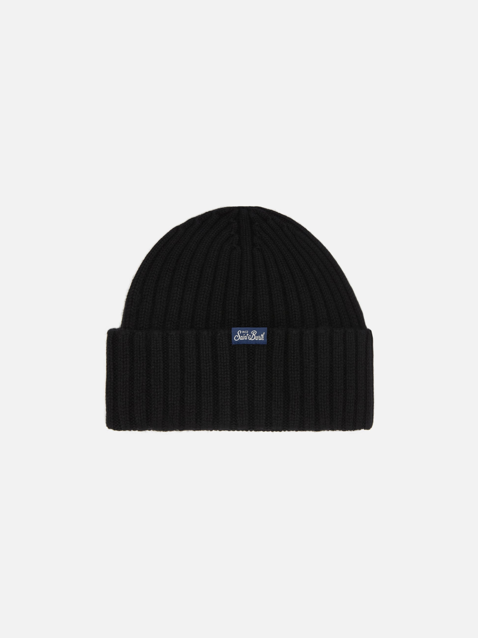 Wengen-Mütze aus Kaschmirmischung in Schwarz mit Lurex-Stickerei „Après Chic“.