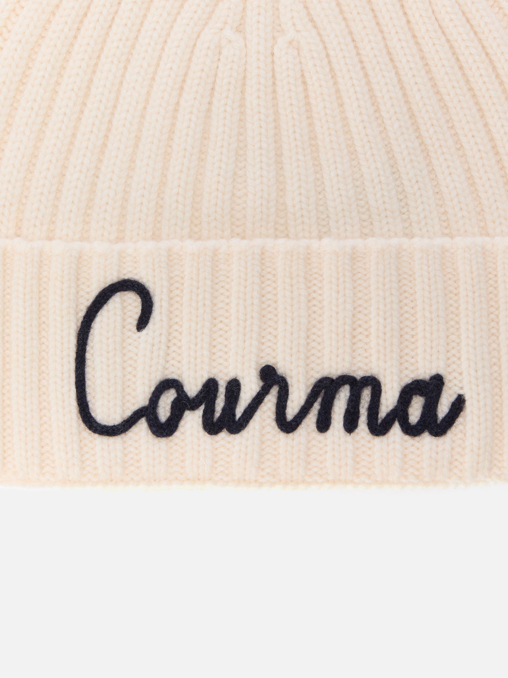 Wengen-Mütze aus Kaschmirmischung in Weiß mit Courma-Stickerei