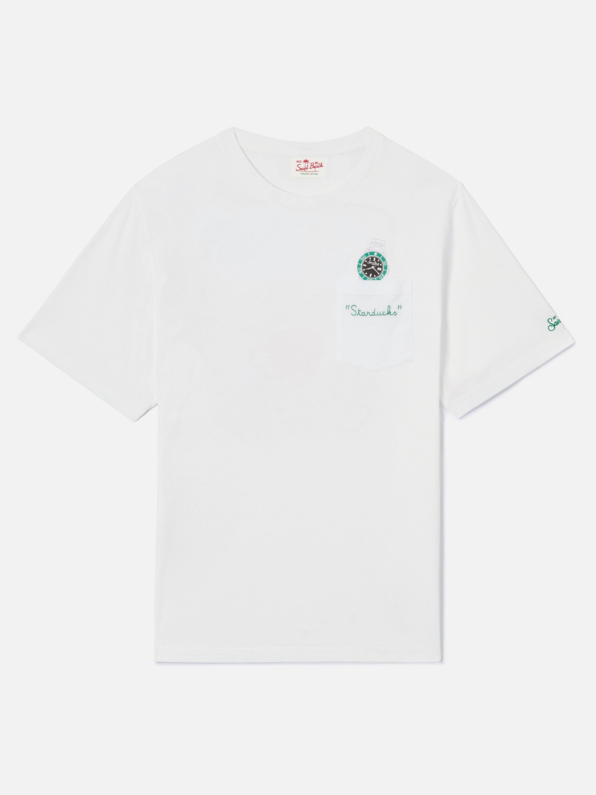T-shirt Austin bianca con orologio e ricamo Starduchs