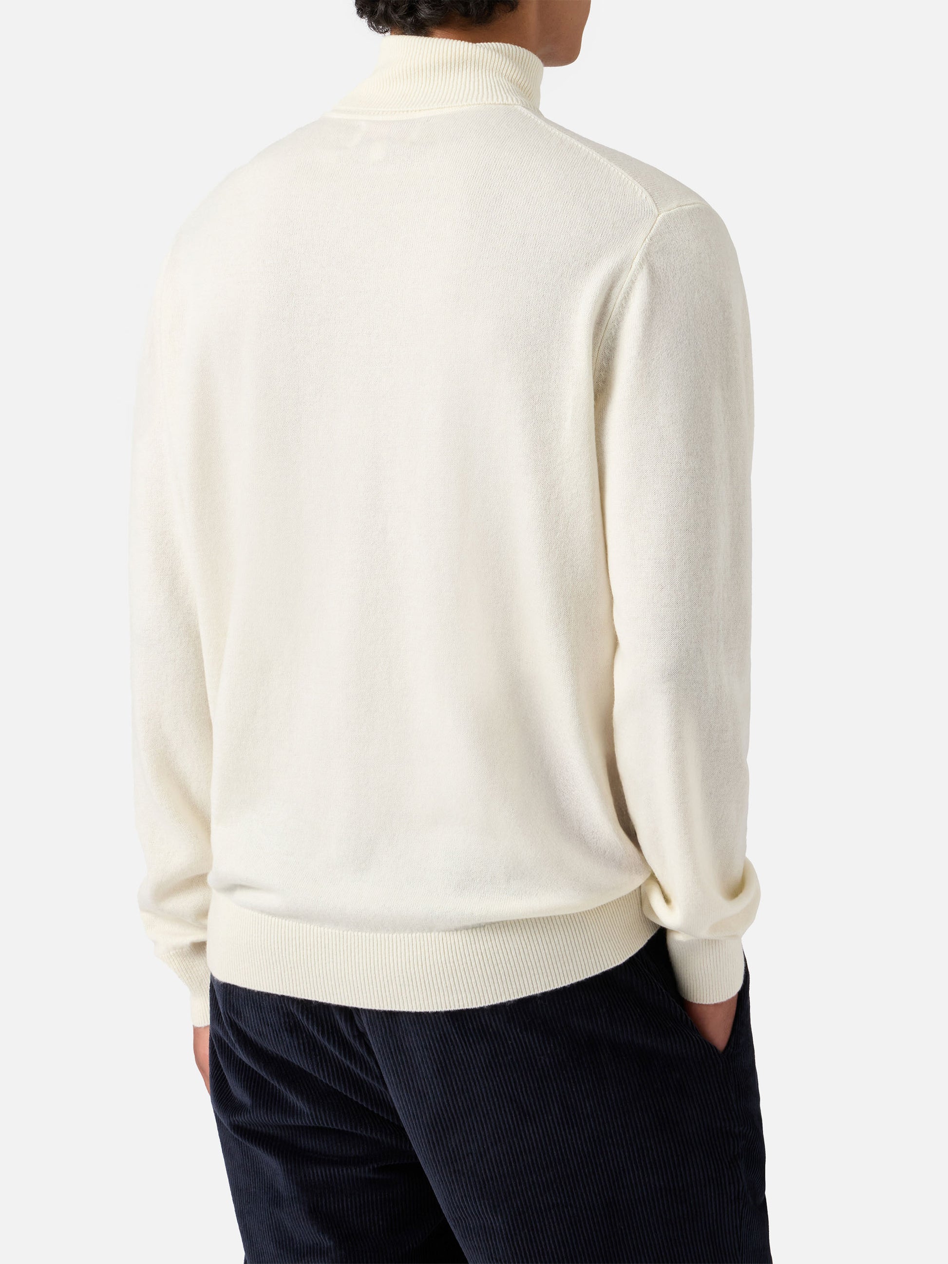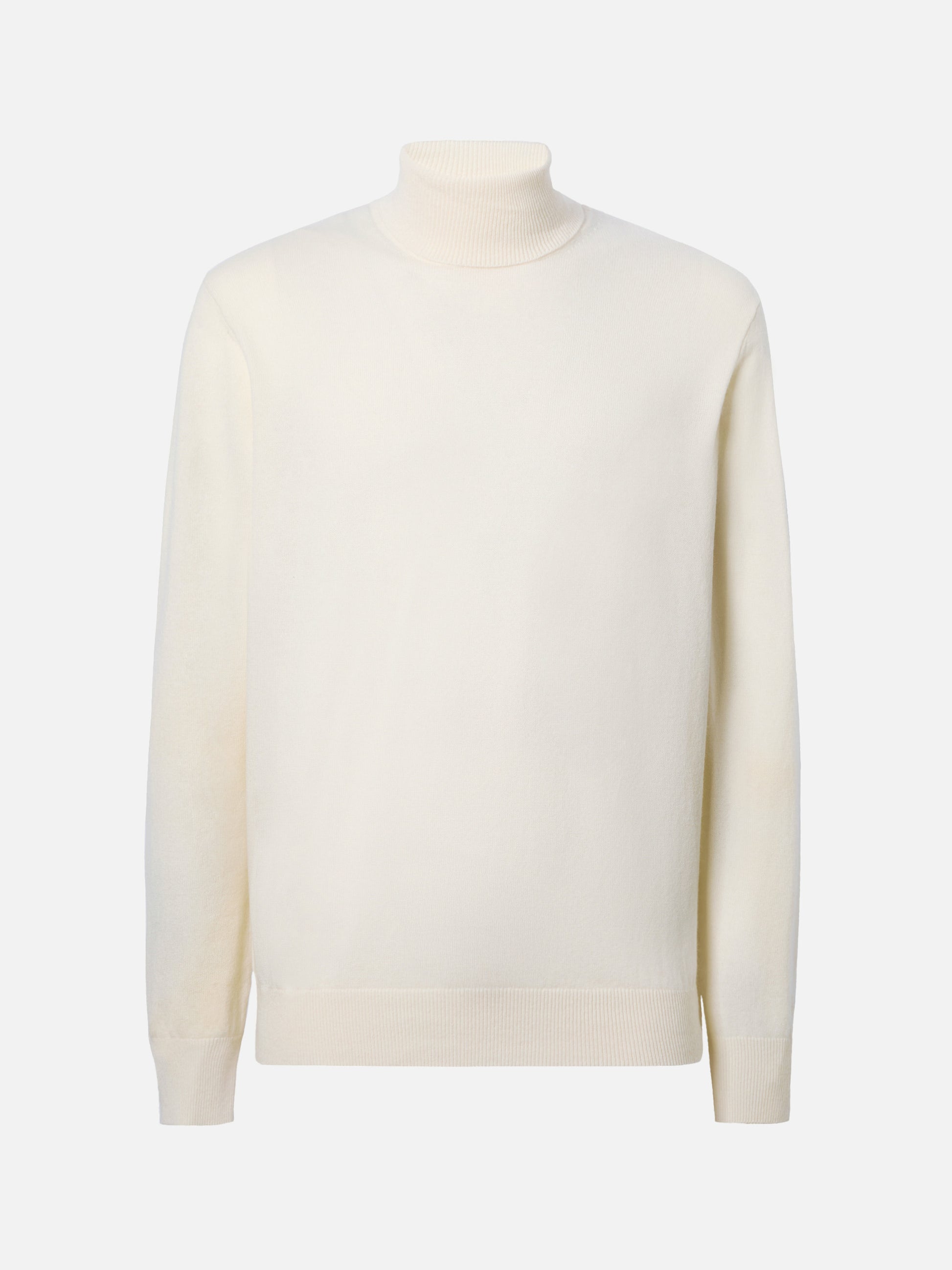 Rollkragenpullover Bond aus weißer Merinowolle und Kaschmir