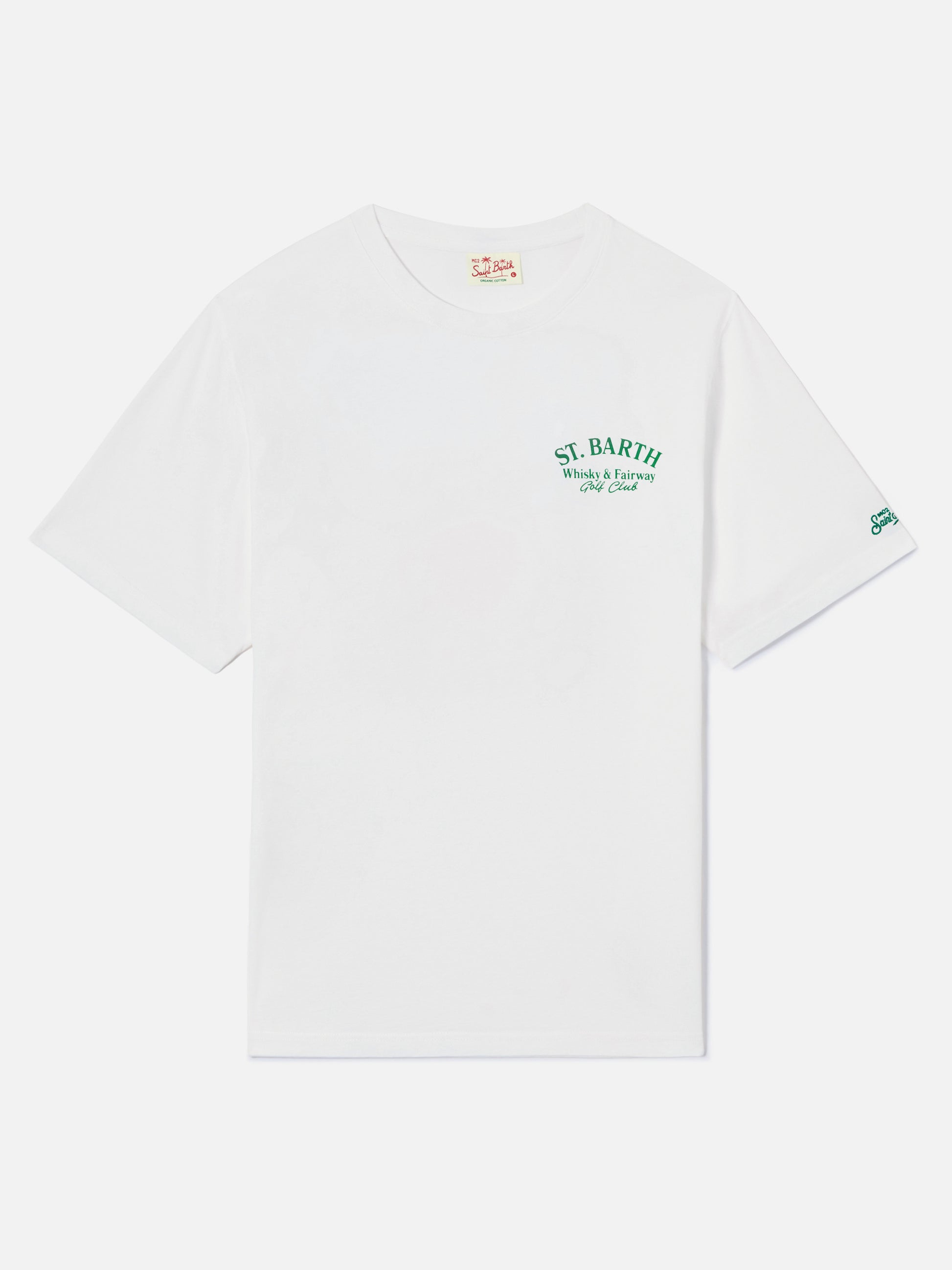 https://it.mc2saintbarth.com/de/products/white-portland-t-shirt-with-whisky-fairway-golf-club-illustration10777980338522T-shirt Portland bianca con illustrazione Whisky & Fairway Golf Club89,00https:files/UID_PRL000208137L-MAN-T-SHIRT-WHITE-MC2-MC2-20260324165213_2.jpghttps:files/UID_PRL000208137L-MAN-T-SHIRT-WHITE-MC2-MC2-20260324165213_2.jpgEURInStockT-SHIRT650948215130Alle Produkte – nur von Man649134276954AVADA - Bestseller647472087386Bedruckte T-Shirts673760117082Cocktail club657402691930Cocktail-T-Shirt für Herren673823621466Man Maxi Print T-shirts673818575194Man t-shirts673853800794Men Prints and Embroidery288164774072T-Shirts für Herren654690484570UpSelling_Man_T-ShirtsLa t-shirt Portland è realizzata in puro cotone, progettata per offrire comfort e una sensazione naturale sulla pelle. Il design bianco tinta unita valorizza la costruzione essenziale del capo. Il modello presenta una stampa Whisky & Fairway Golf Club sul petto, mentre sul retro è arricchito da una maxi illustrazione a tema golf con sacca da golf, bottiglia di whisky e accessori. Il capo è rifinito con ricamo logo sulla manica, scollo a girocollo, maniche corte e linea dritta con vestibilità regolare.