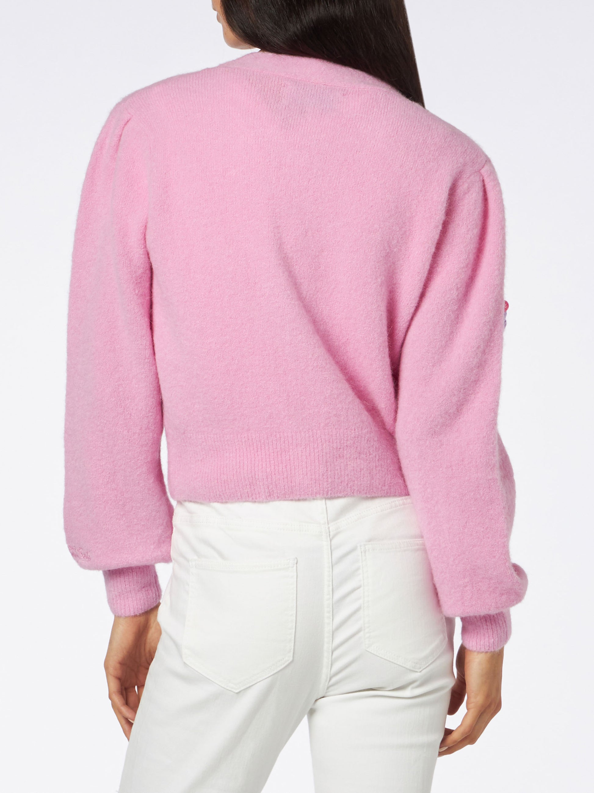 Gebürsteter, kurz geschnittener Damen-Cardigan mit Puffärmeln