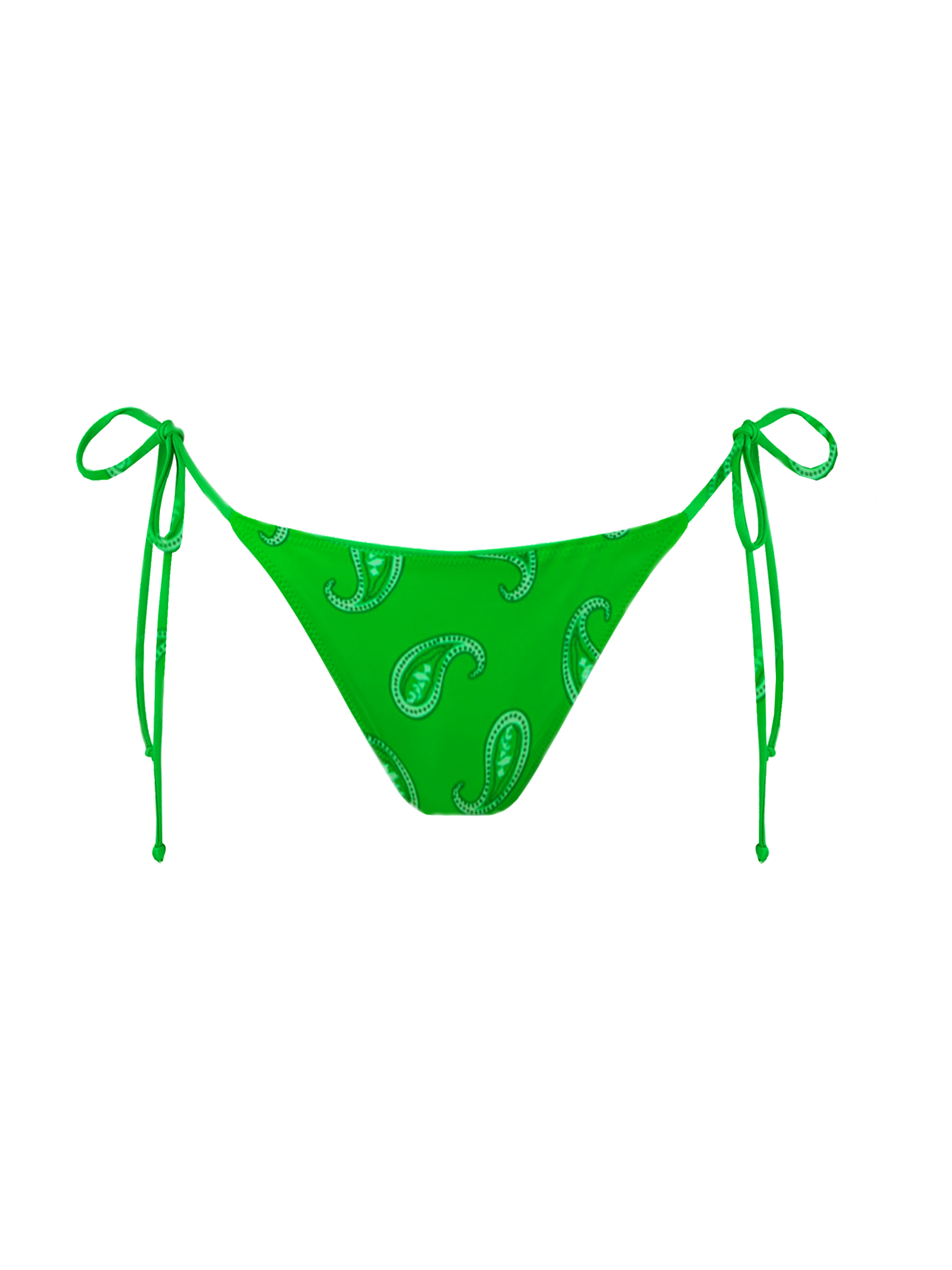 Damen-Badehose Grüner Paisley-Alloverdruck Verstellbare seitliche Schnürsenkel Stretch-Passform Normale Passform Zusammensetzung: 90 % Polyamid 10 % Elasthan Pflegehinweise: Kalte Handwäsche. Nicht einweichen. Kein Bügeln. Nicht bei Kontakt mit anderen Kleidungsstücken abtrocknen. Nach Kontakt mit Chlor oder Salzwasser abspülen