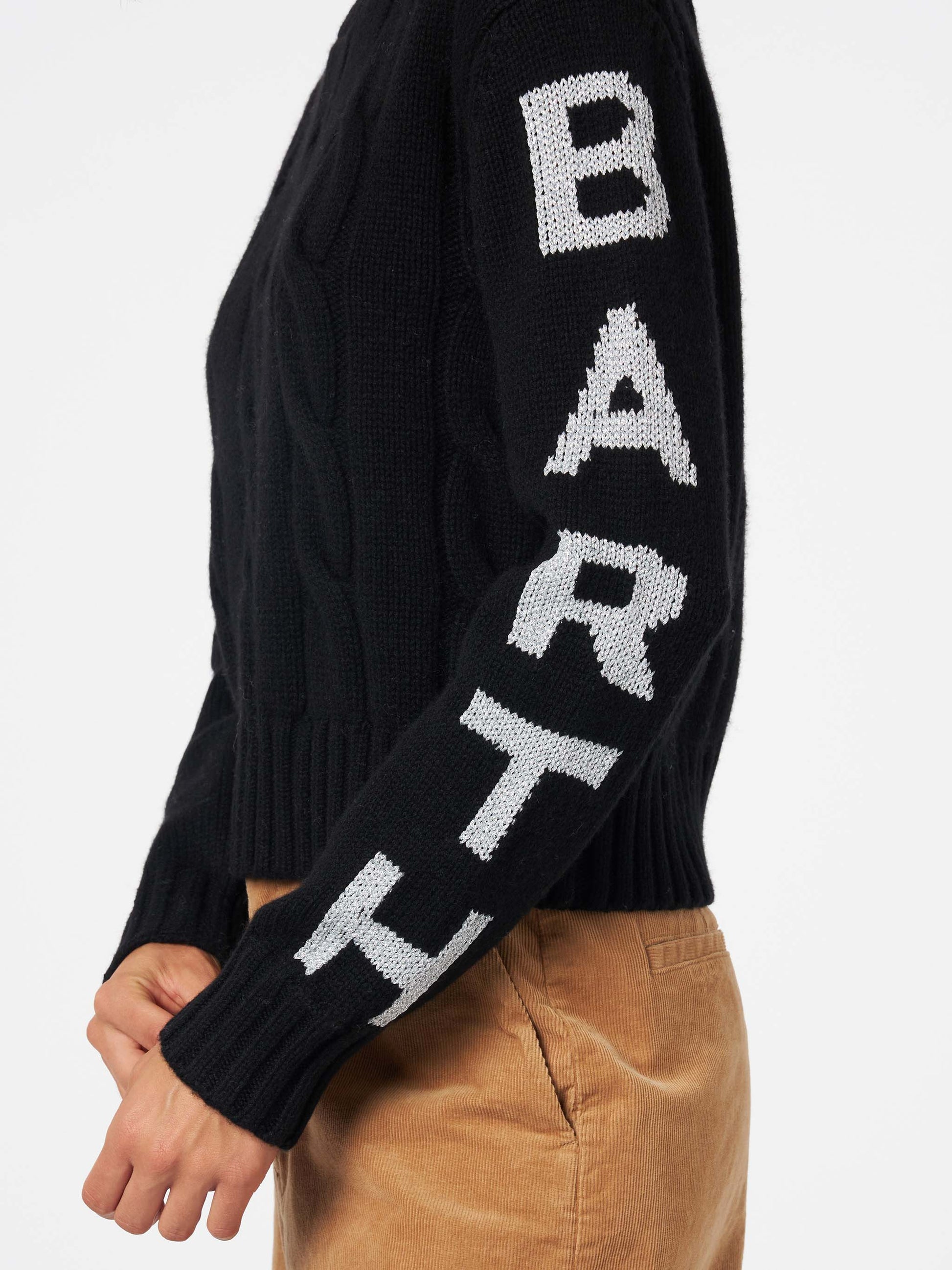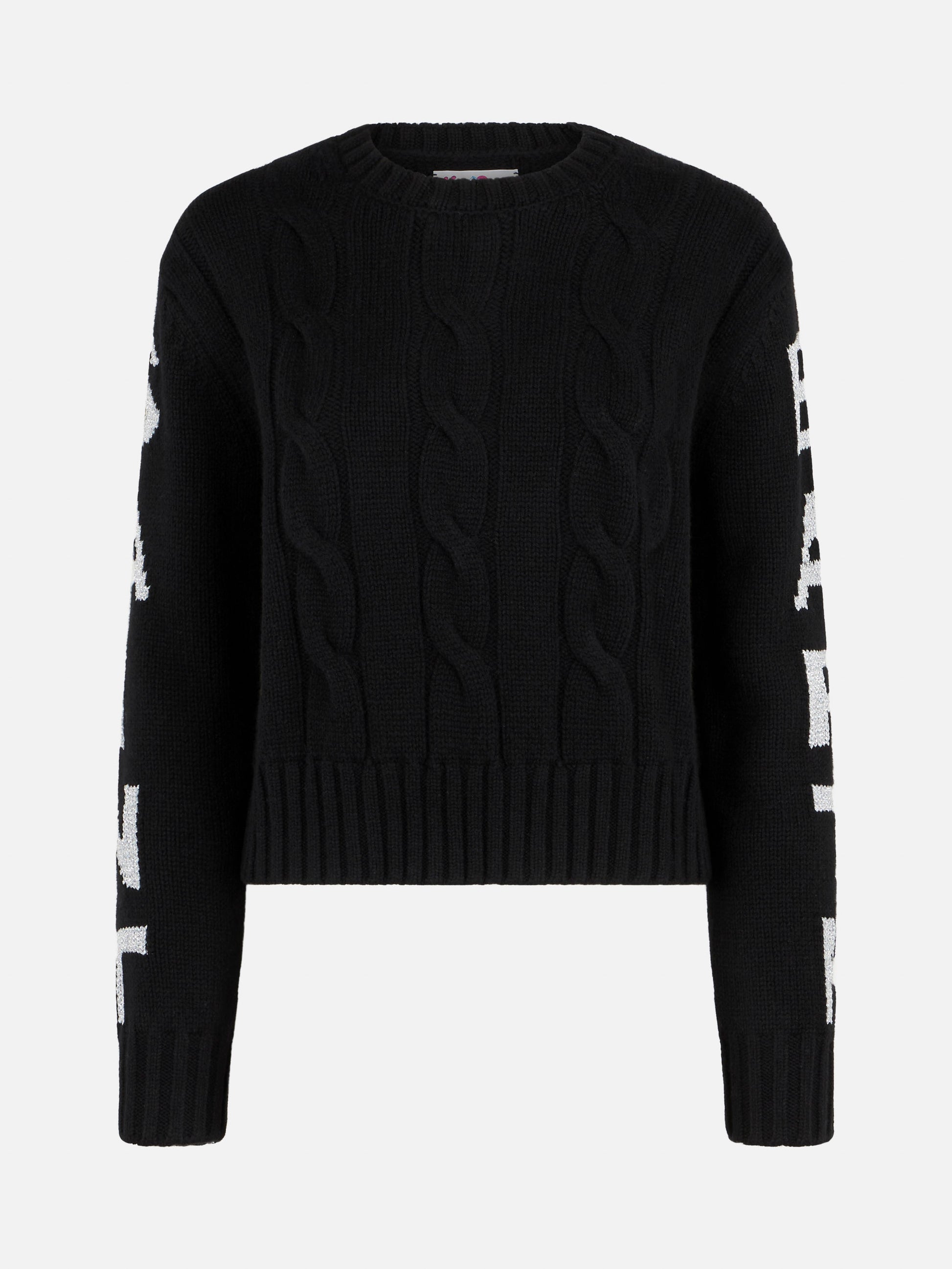Geflochtener Damenpullover mit Rundhalsausschnitt und Saint-Barth-Lurex-Print