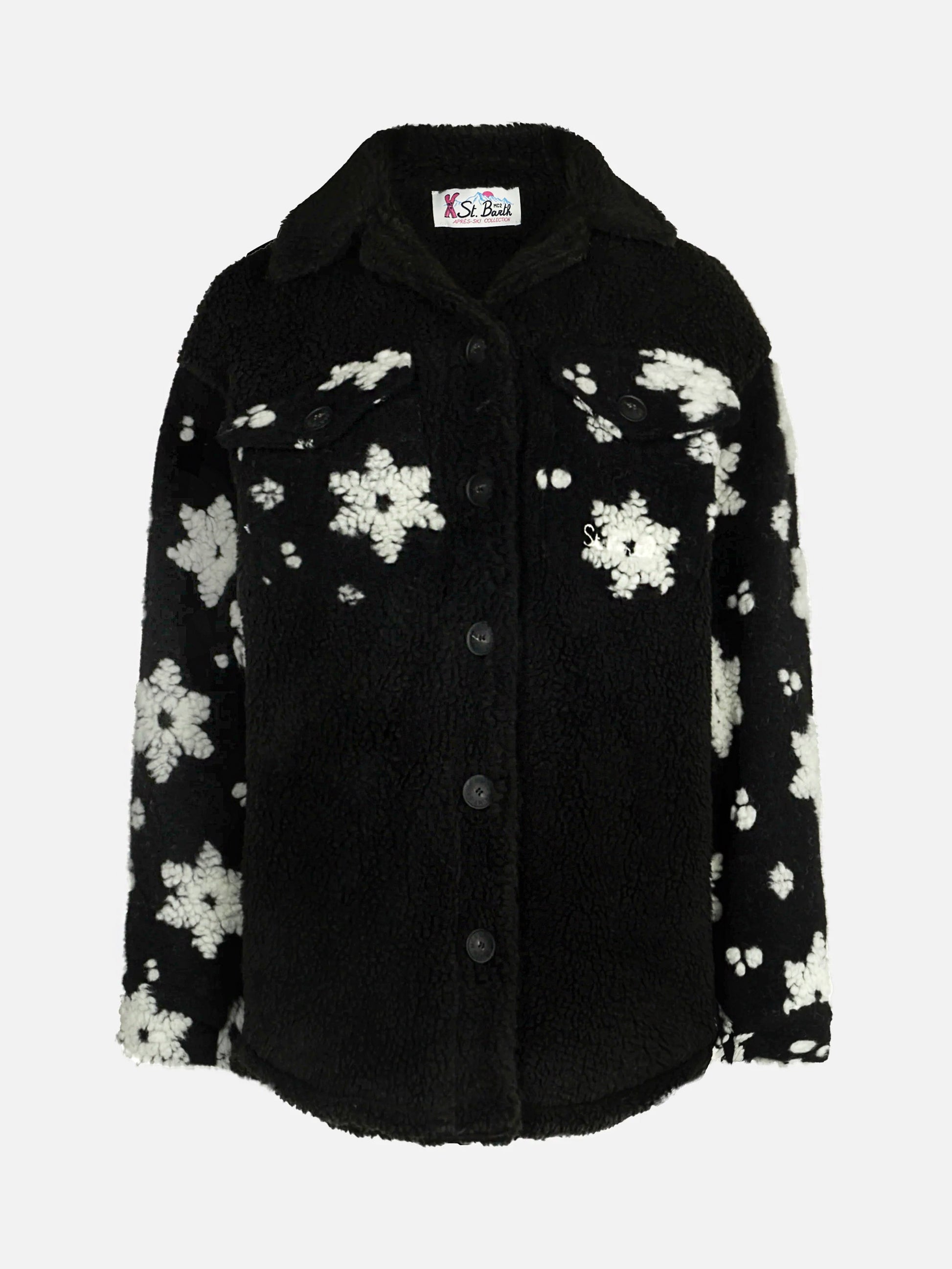 Damen-Sherpa-Overshirt mit Schneeflocken-Print