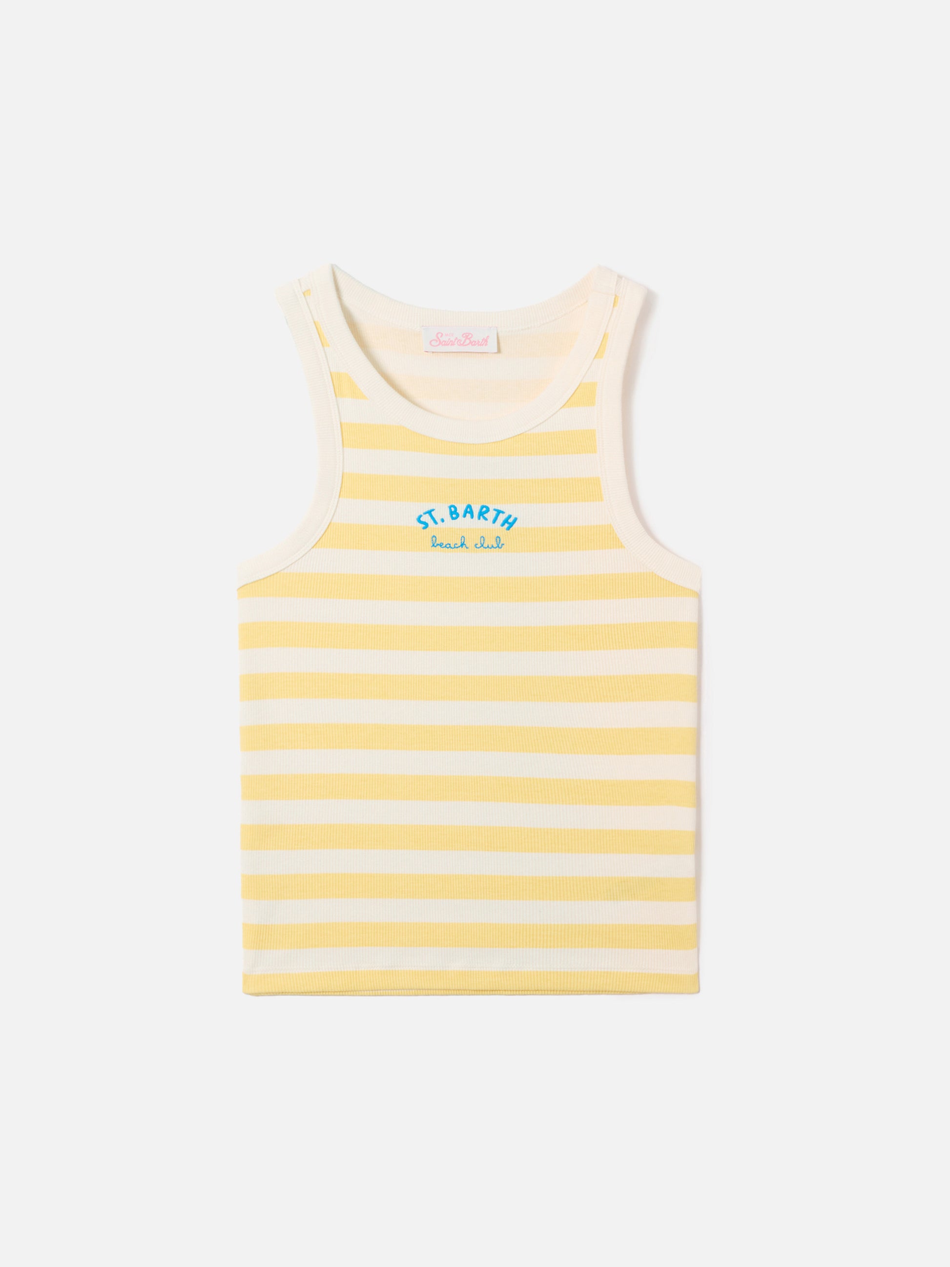 Canottiera Ada a righe gialle con ricamo Beach Club