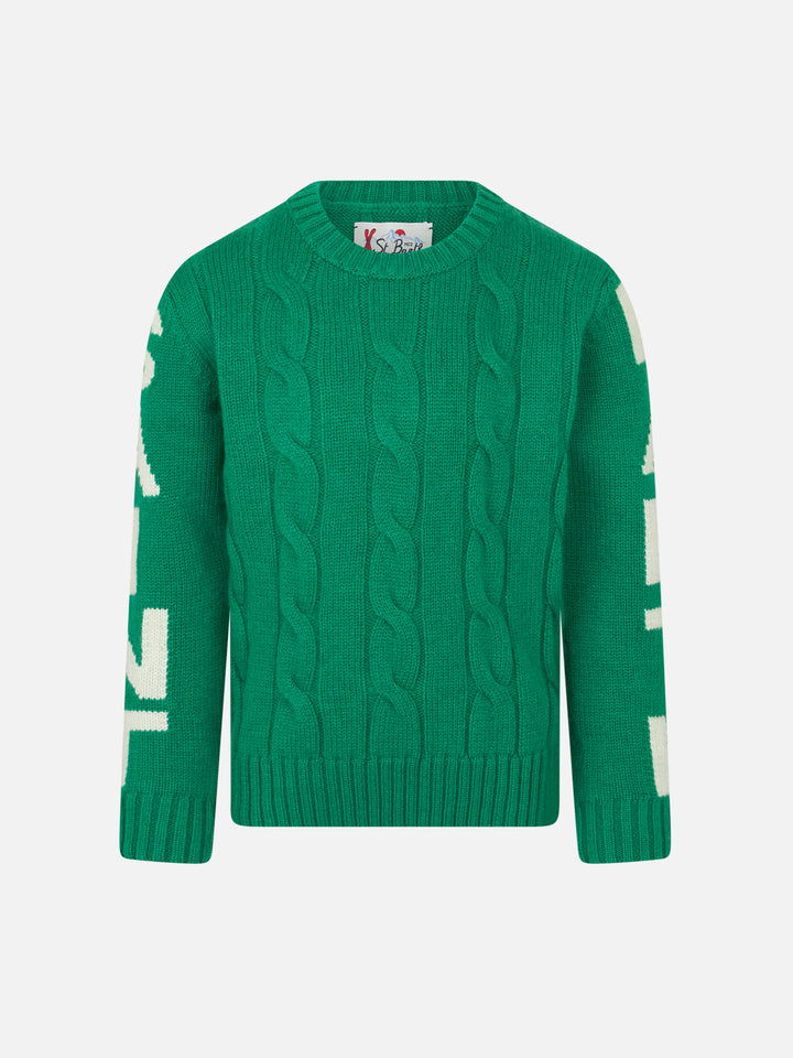 • Boy green sweater with St. Moritz jacquard - MC2 Saint Barth Boy green sweater with St. Moritz jacquard - MC2 Saint Barth