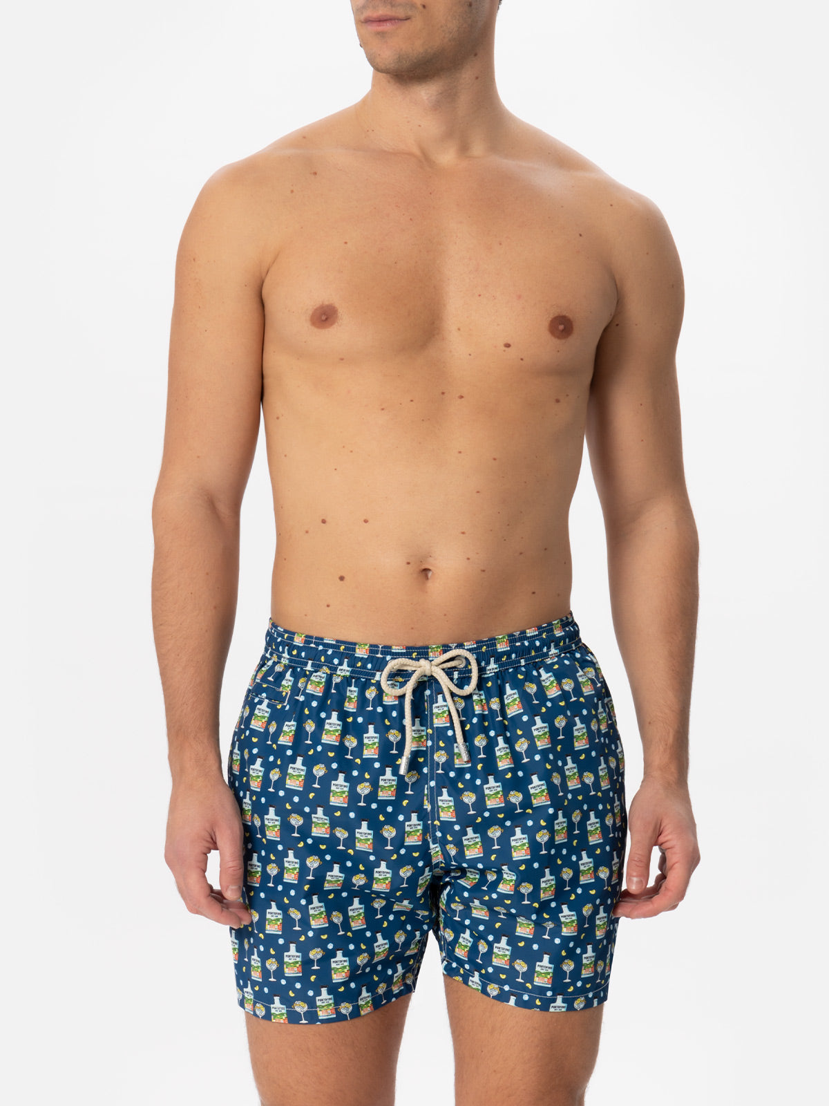 Man light fabric swim shorts with Portofino gin print | PORTOFINO DRY GIN SPECIAL EDITION