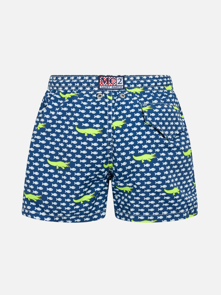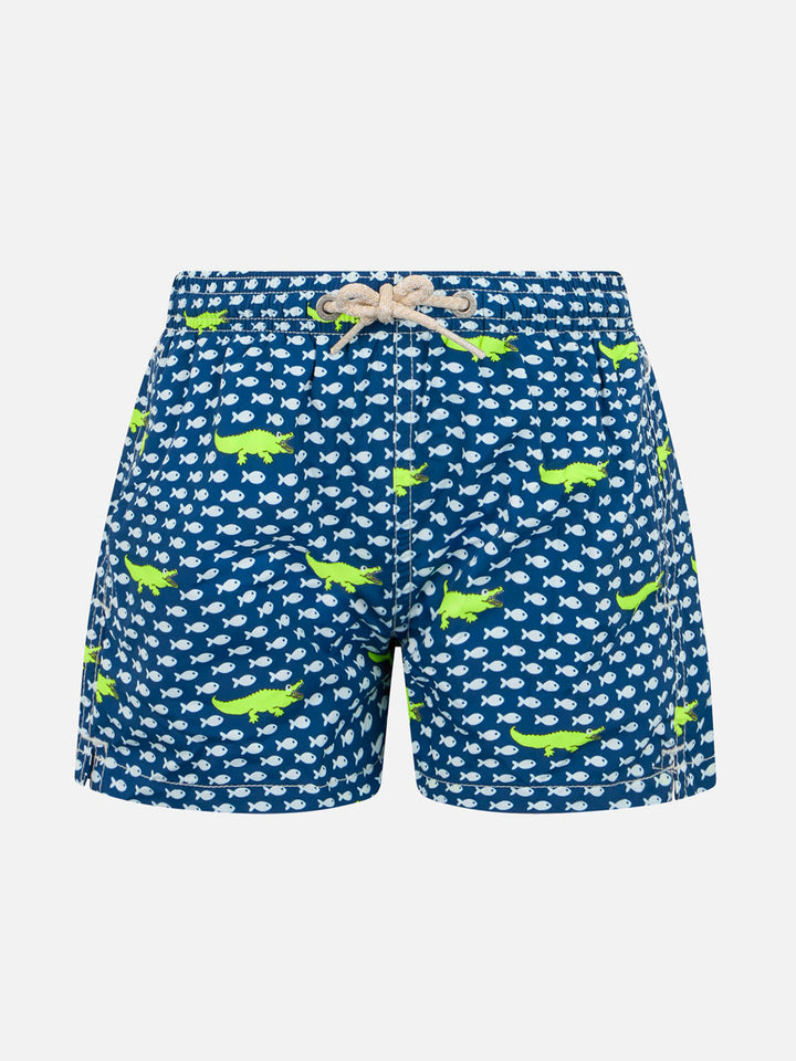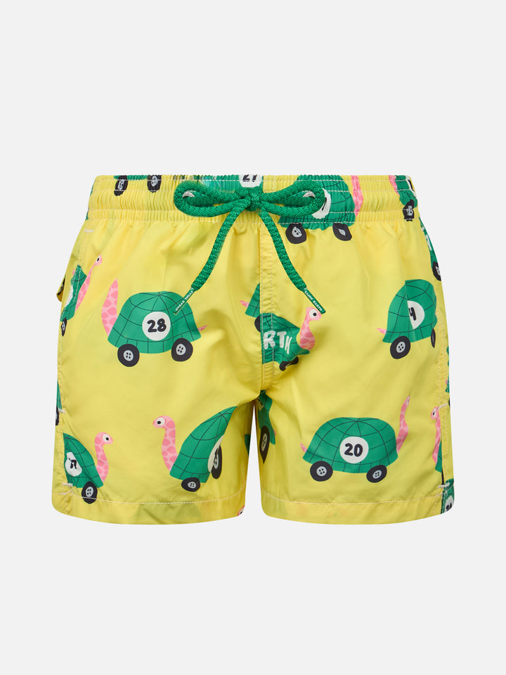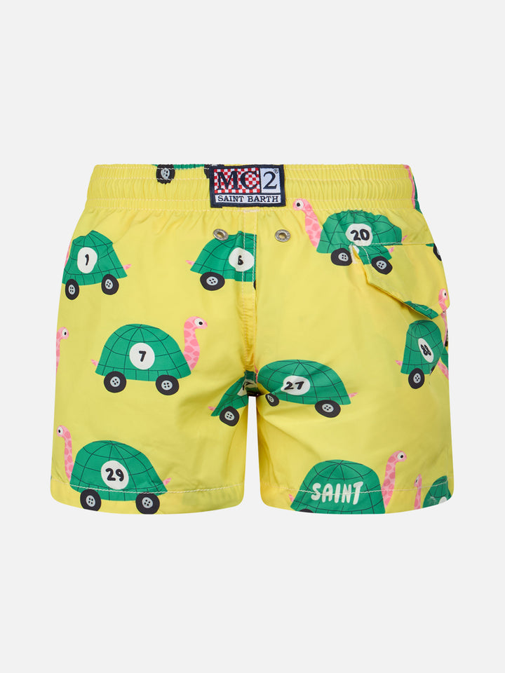• Boy lightweight fabric swim-shorts Jean Lighting with turtle print - MC2 Saint Barth Boy lightweight fabric swim-shorts Jean Lighting with turtle print - MC2 Saint Barth