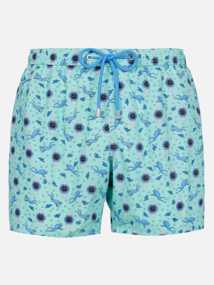 • Man lightweight fabric swim-shorts Lighting Micro Fantasy with watches print - MC2 Saint Barth Man lightweight fabric swim-shorts Lighting Micro Fantasy with watches print - MC2 Saint Barth