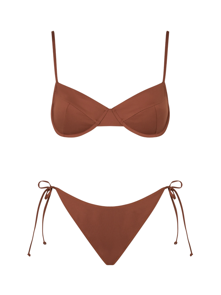• Triangle bikini Leah Lido in brown with classic swim briefs Triangle bikini Leah Lido in brown with classic swim briefs