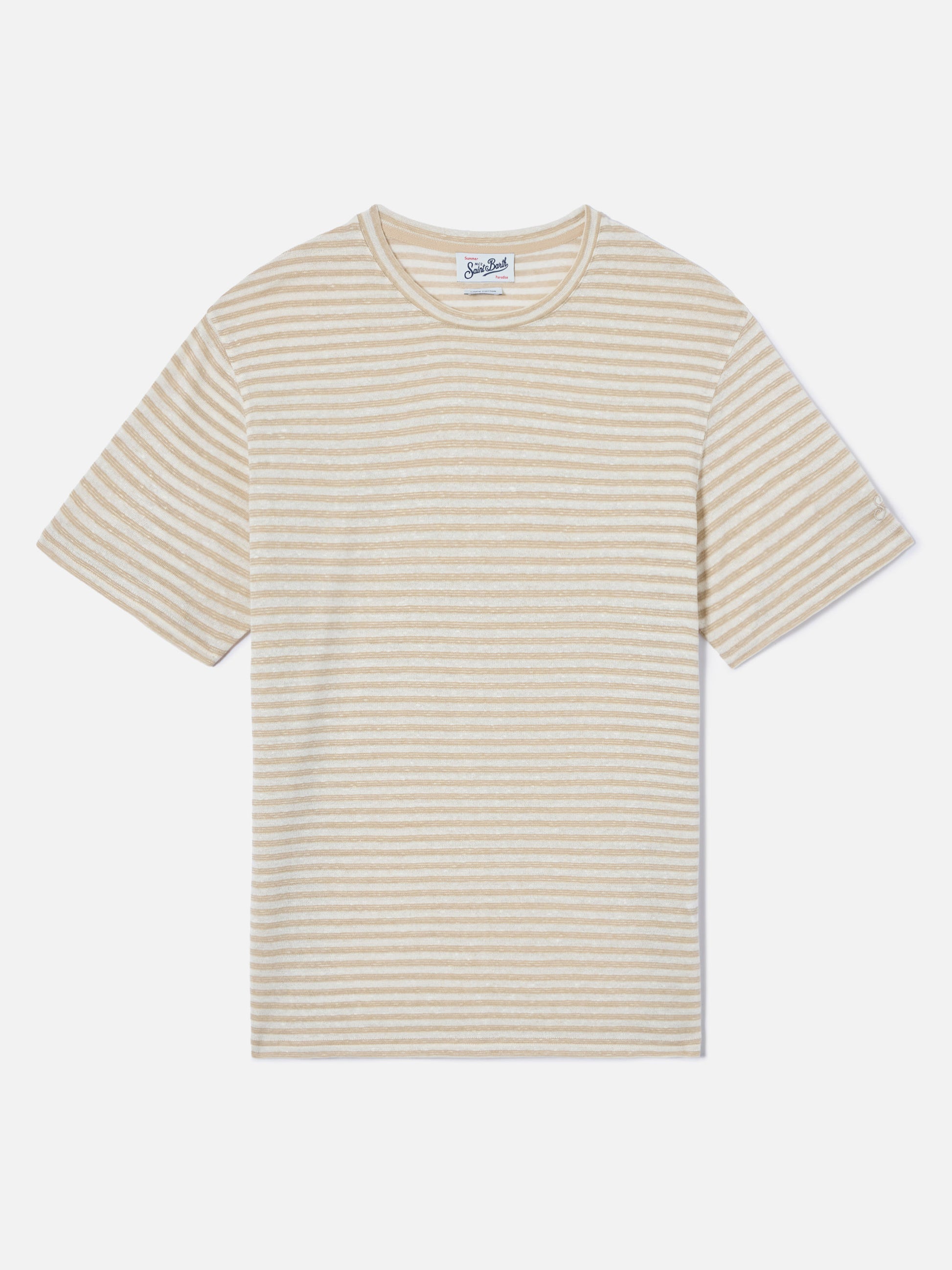 Beige striped Dover linen-blend t-shirt with logo embroidery