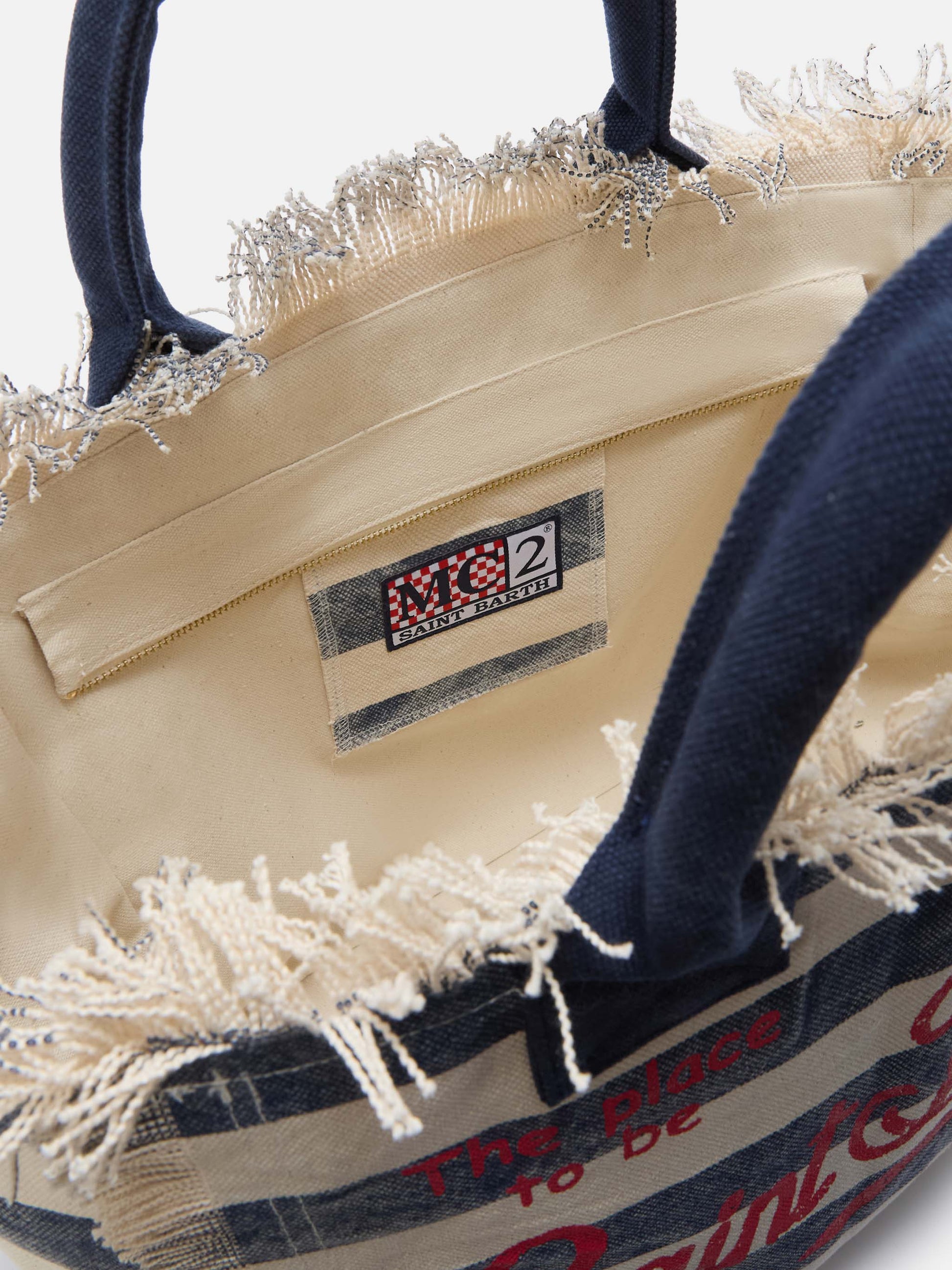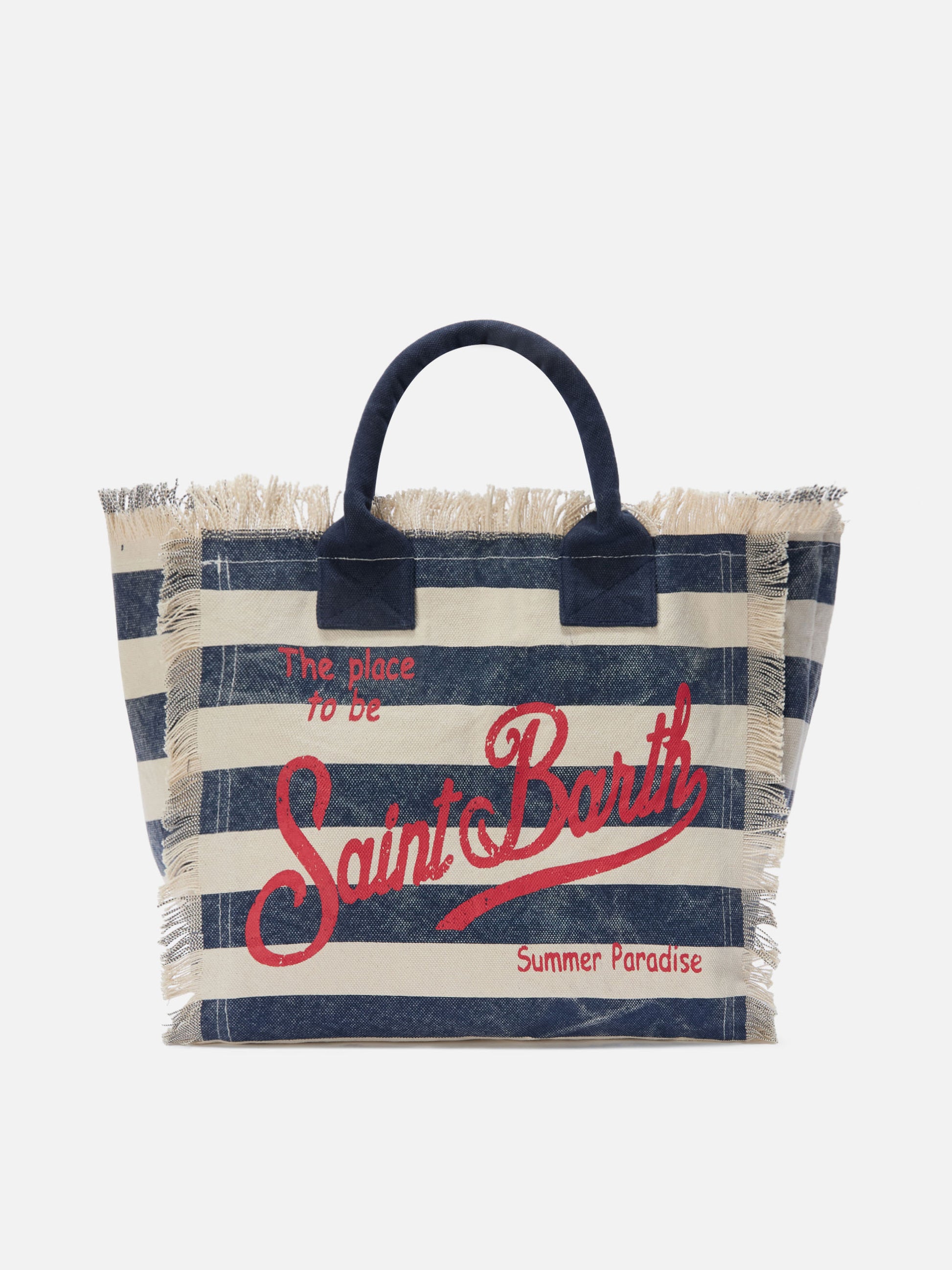 Blue canvas Vanity regular bag with horizontal stripes
