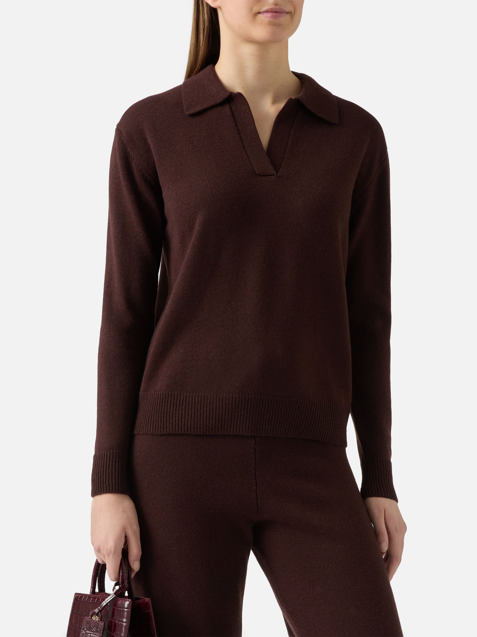 Brown Eze wool sweater with polo collar