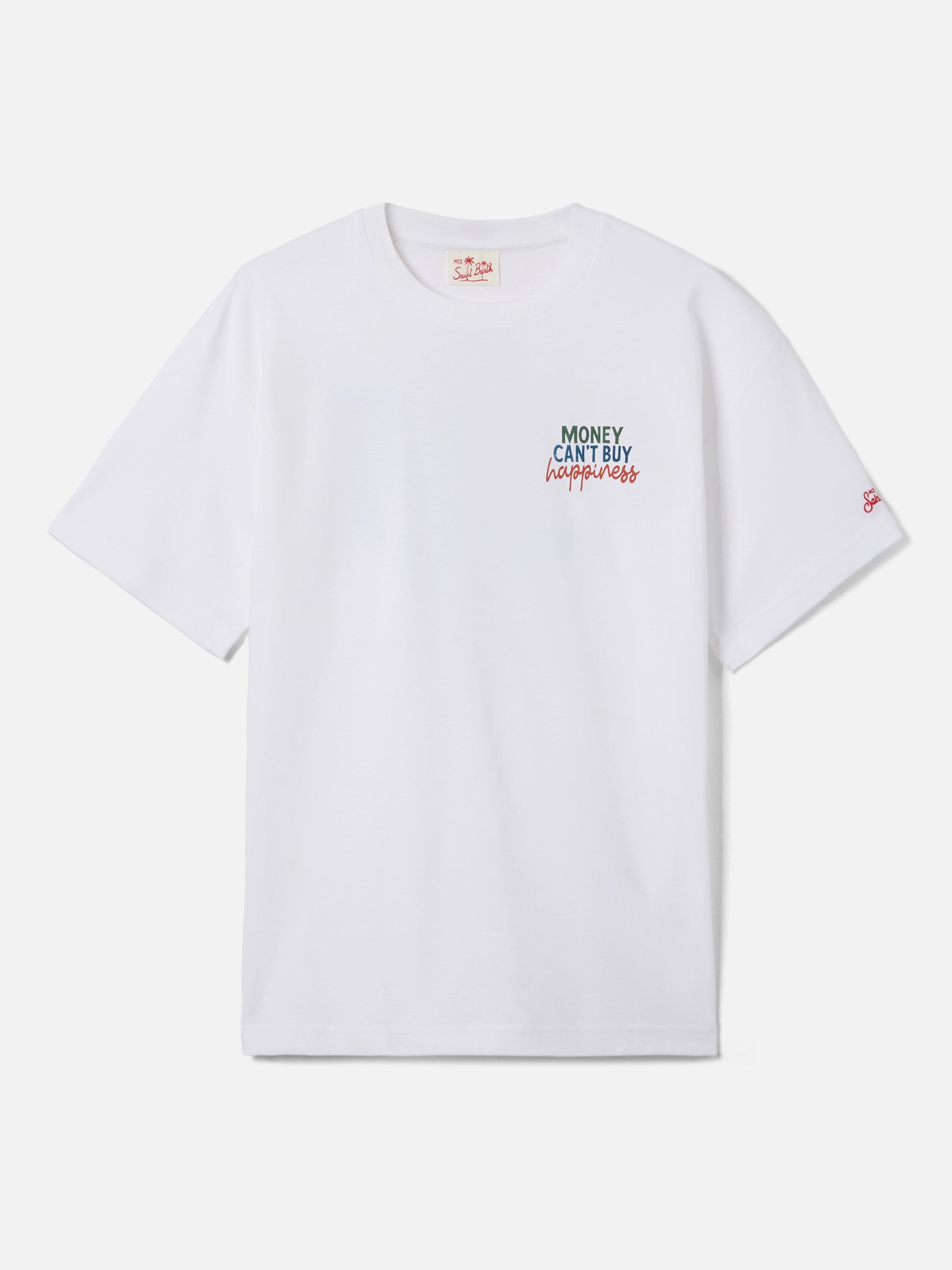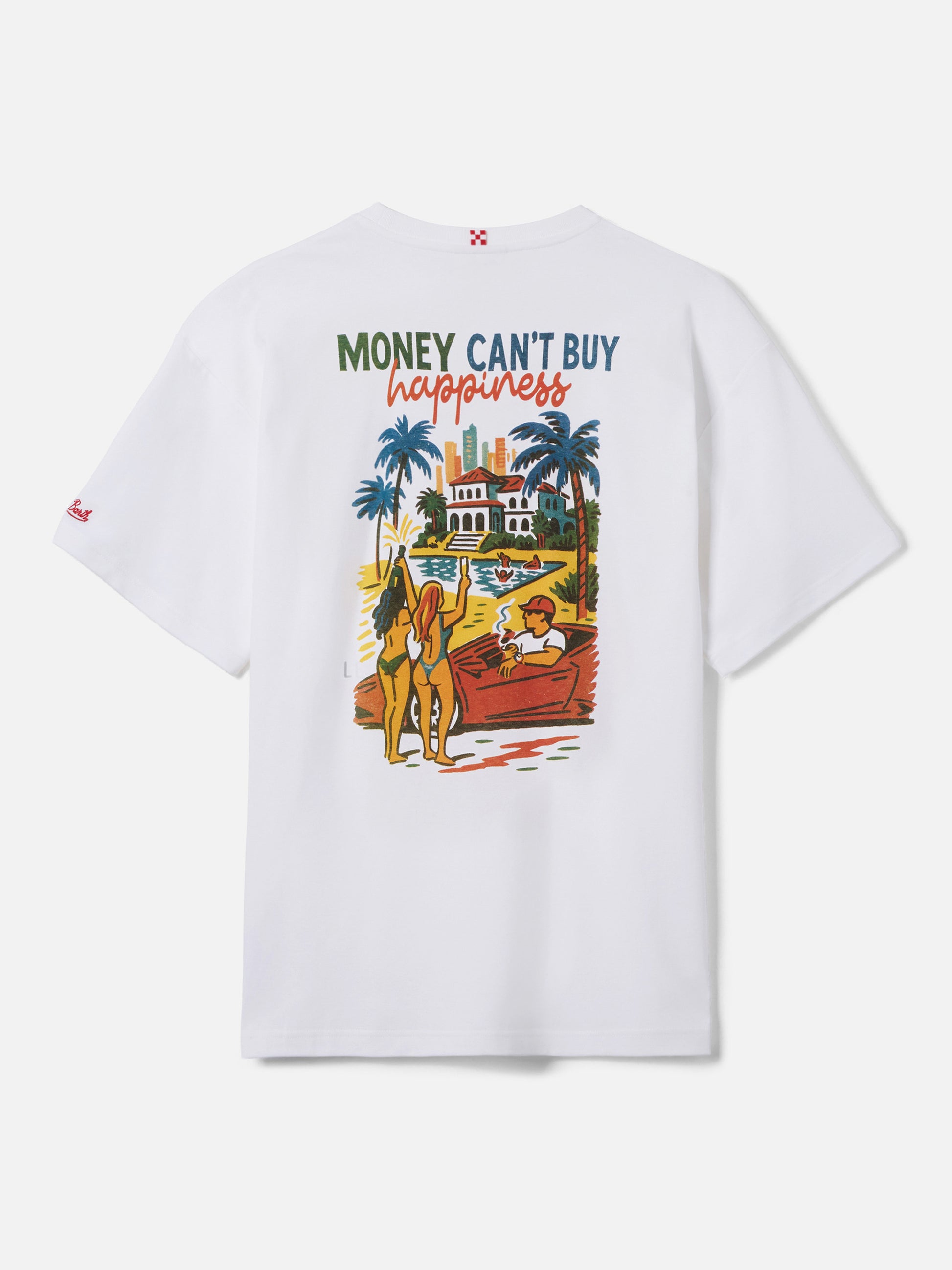 Delmar t-shirt with Money Can’t Buy Happiness print and maxi graphic on the back