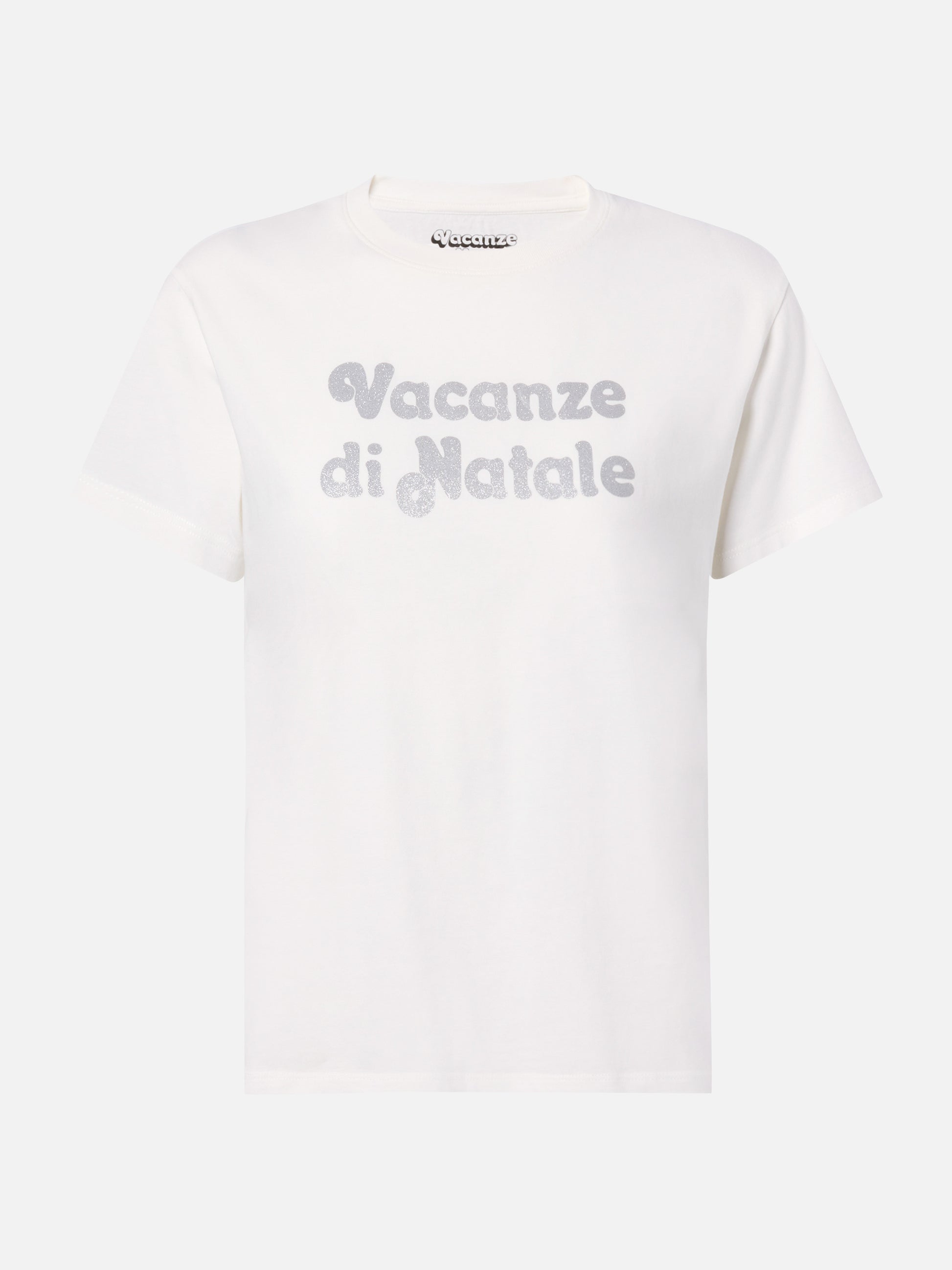 Emilie cotton T-shirt in white with Vacanze di Natale silver glitter print | VACANZE DI NATALE SPECIAL EDITION