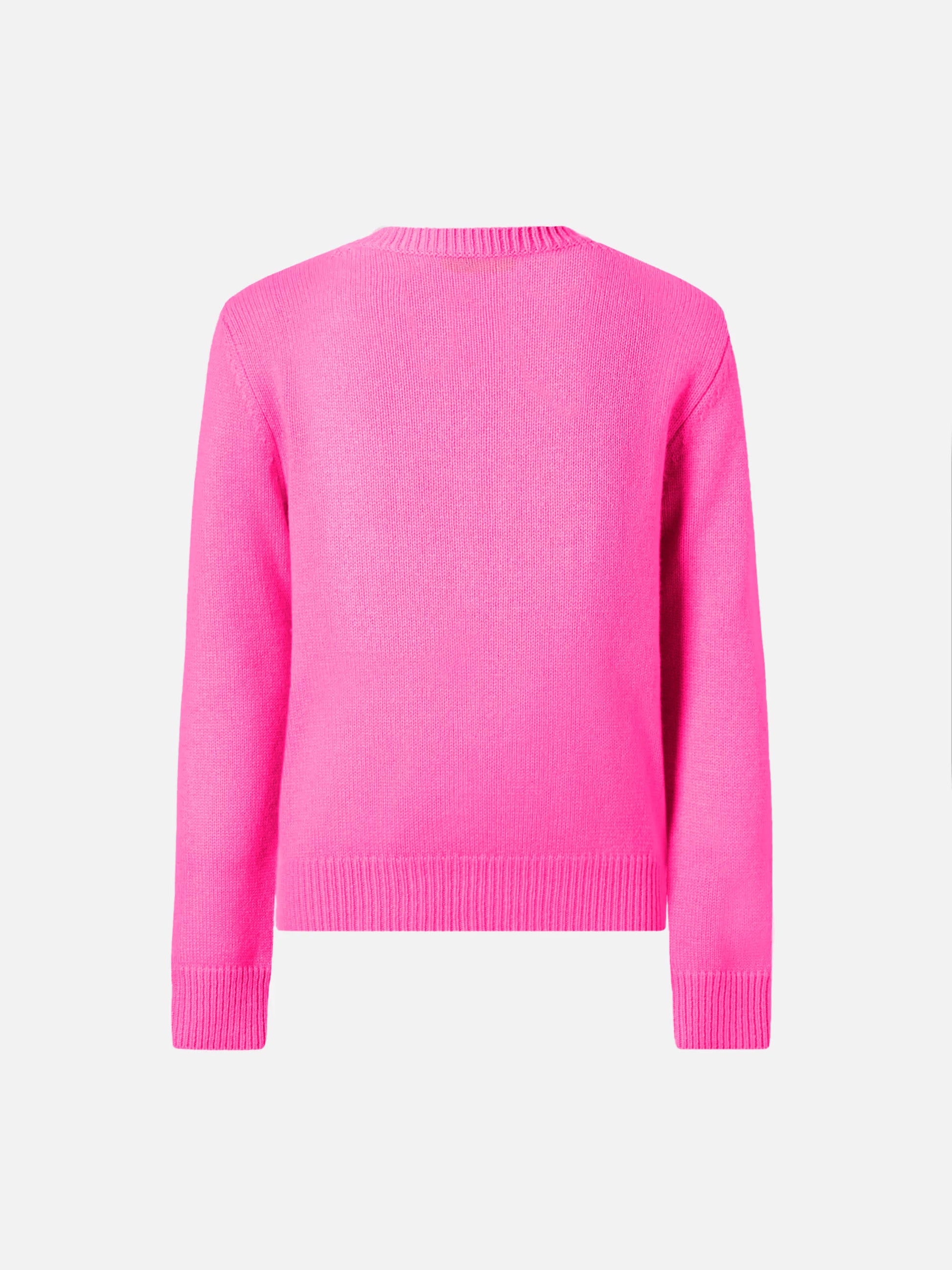 Fluo pink crewneck Princess Soft with Adoro jacquard
