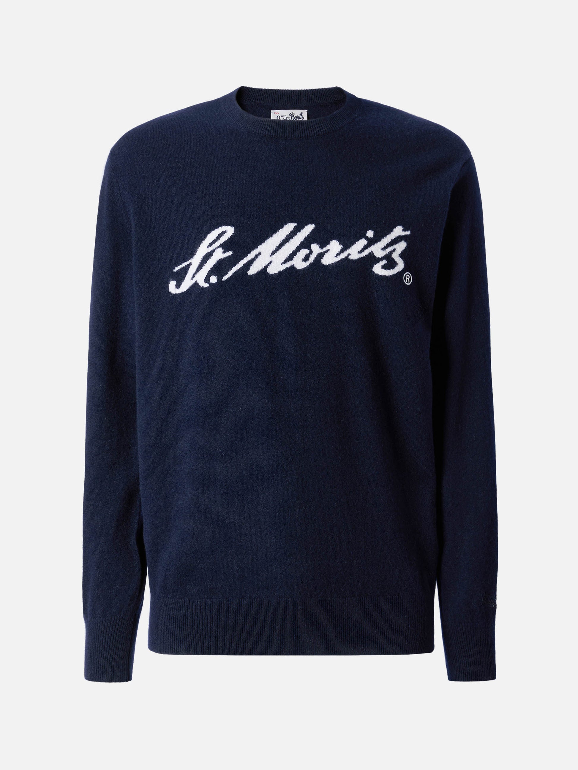 Heron Light sweater in 100% blue CASHMERE with St. Moritz intarsia | ST. MORITZ TOP OF THE WORLD