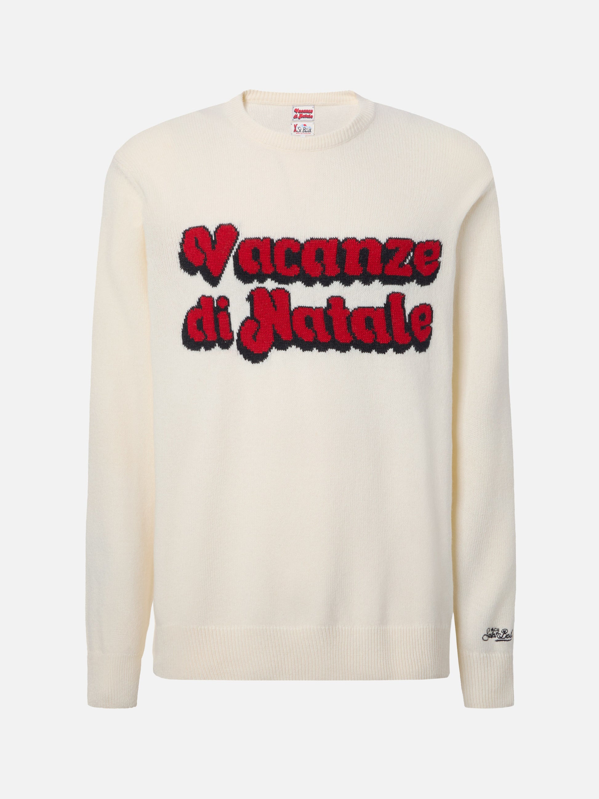 Heron crewneck in white with Vacanze di Natale jacquard | VACANZE DI NATALE SPECIAL EDITION