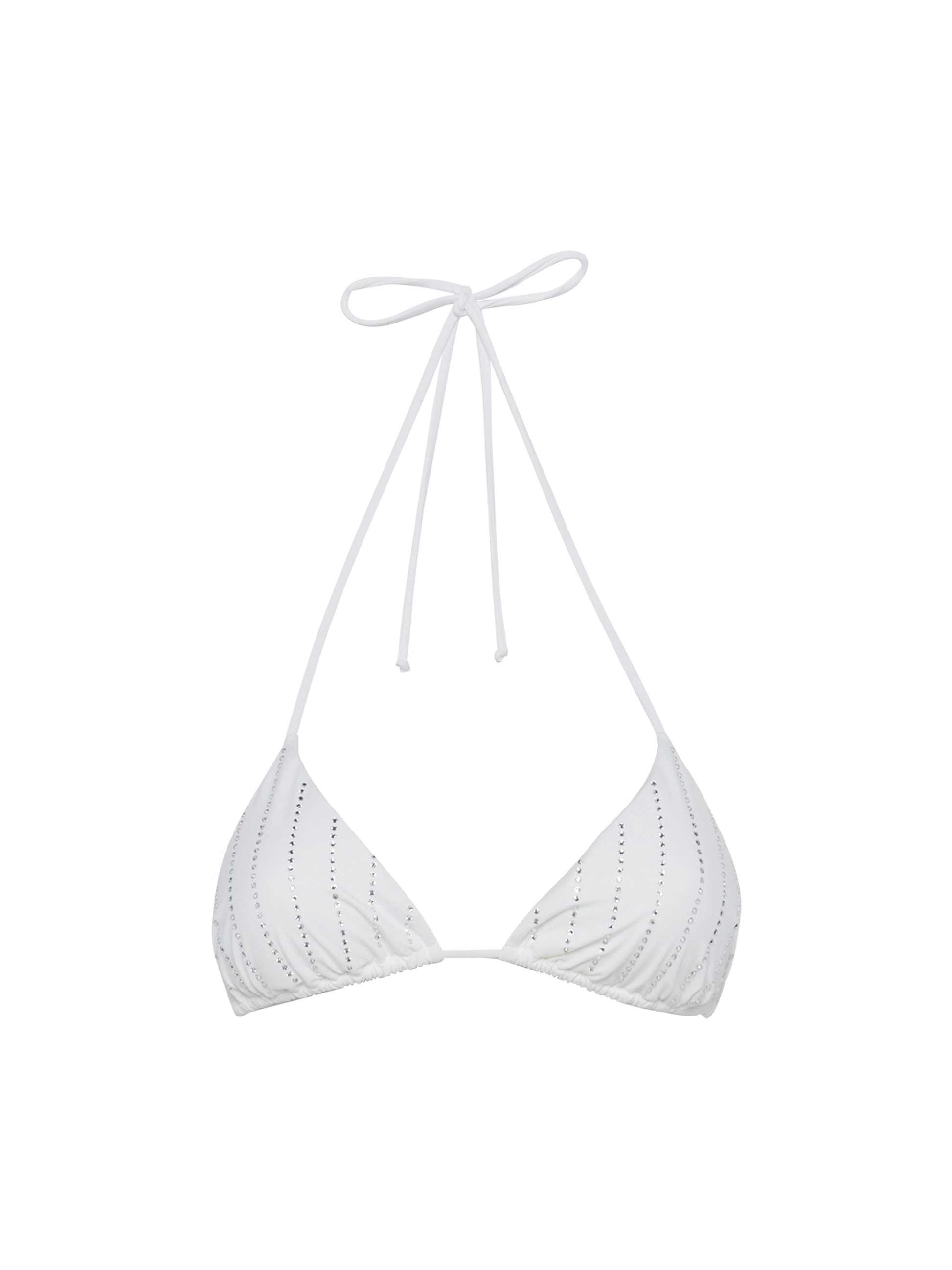 Leah triangle top swimsuit with striped rhinestone embellishment